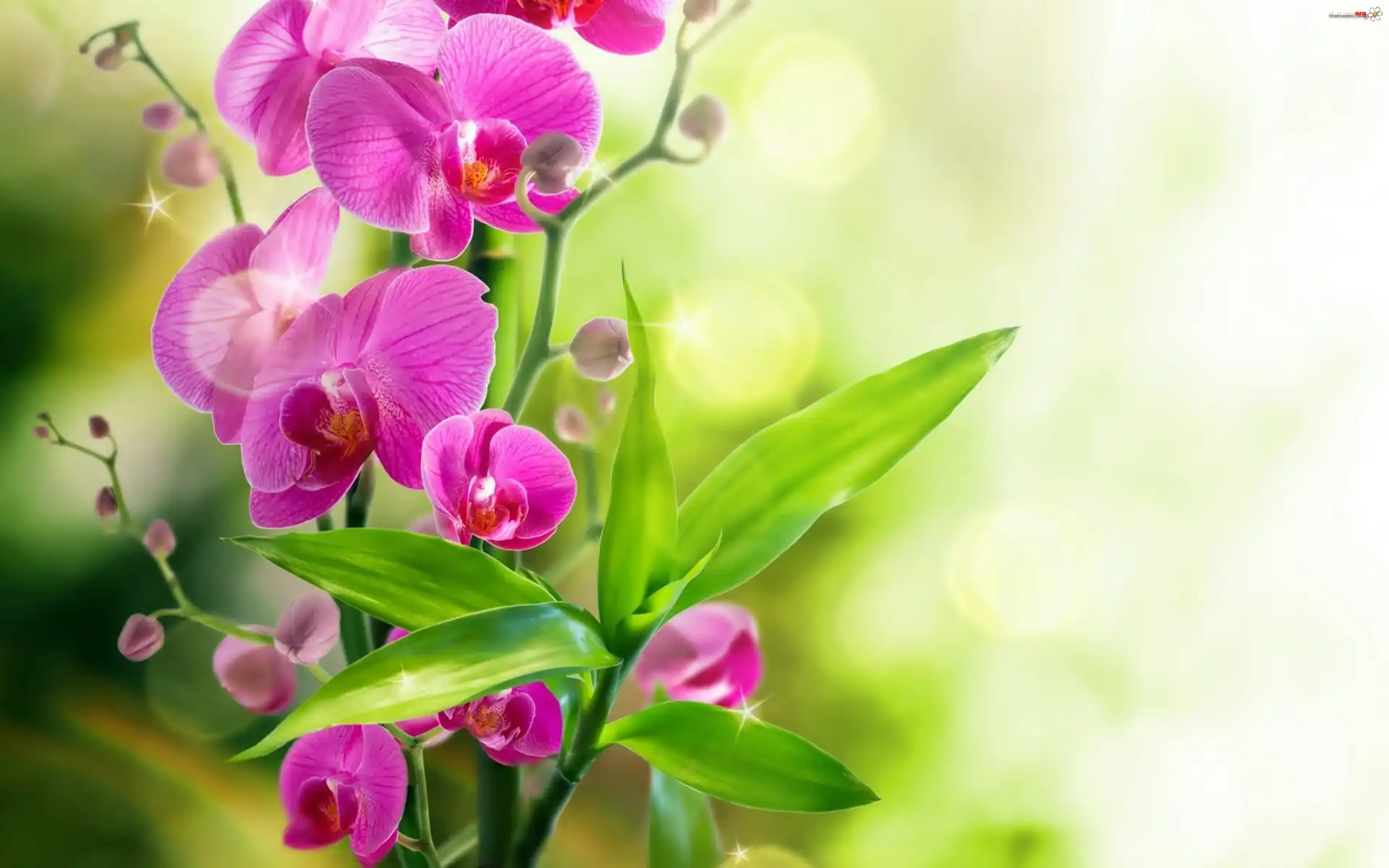 Kwiat Orchidea, Kwiaty, Liście