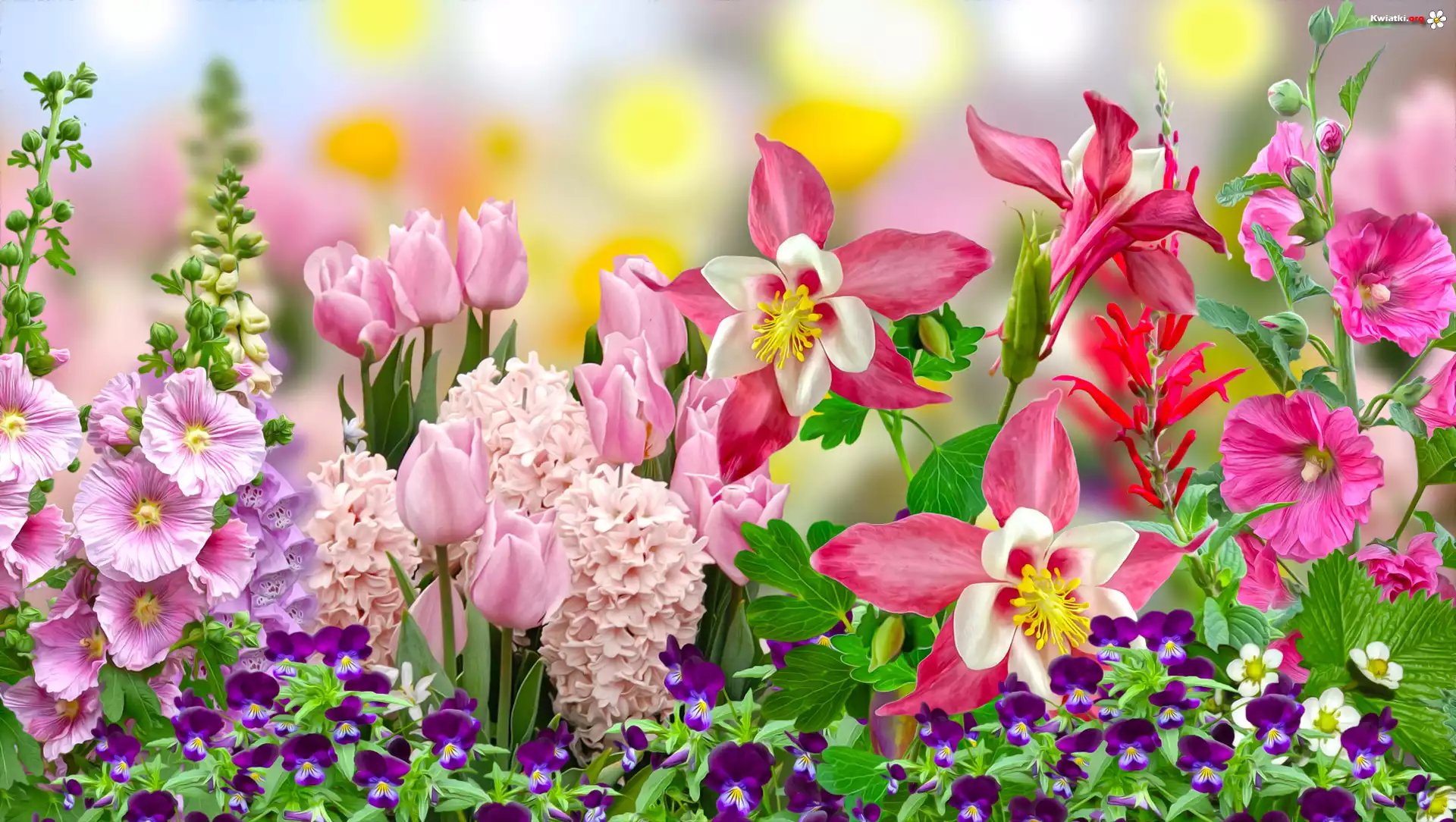 Kwiaty, Tulipany, Malwy, Hiacynty, Orliki, Grafika - Zdjęcia