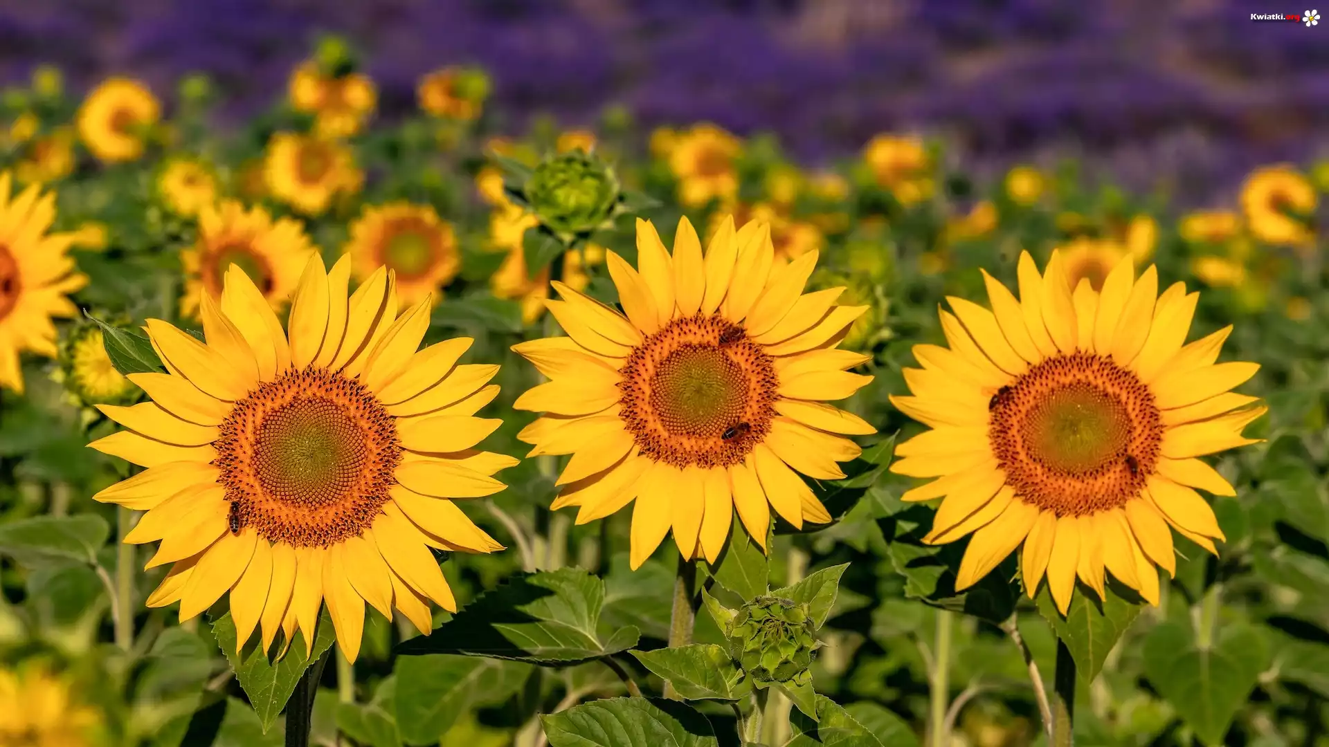 Kwiaty, Słoneczniki, Liście, Owad, Pszczoły - Zdjęcia