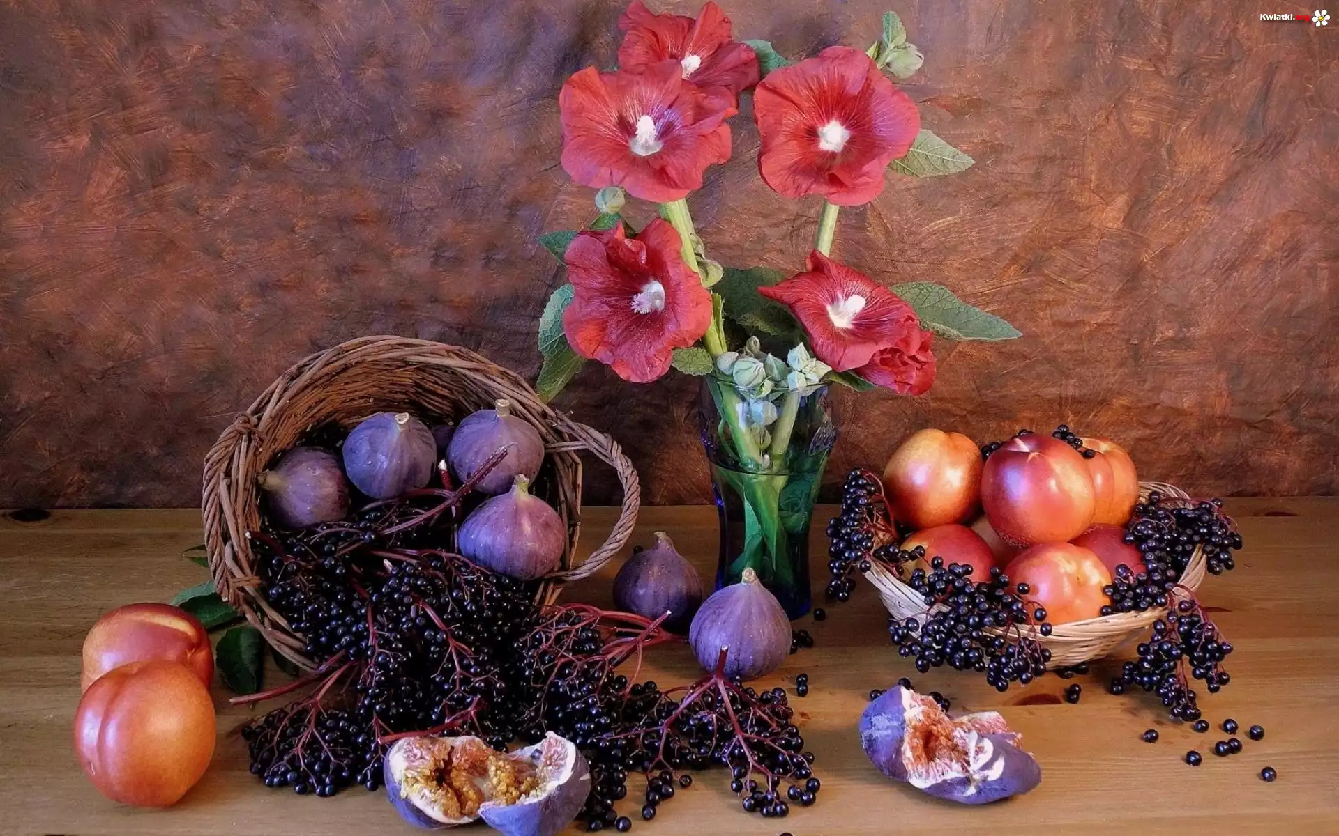 Kwiat Kwiaty, Malwy, Flakon, Figi, Owoce, Kompozycja