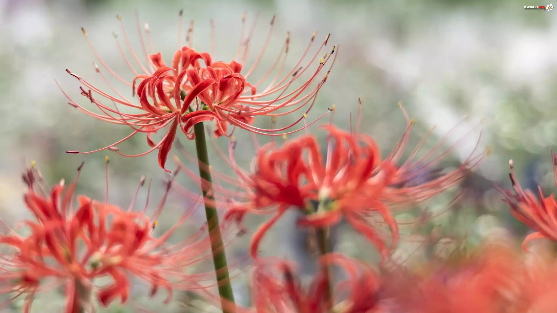 Kwiaty, Czerwone, Lilie pajęcze, Lycoris - Zdjęcia