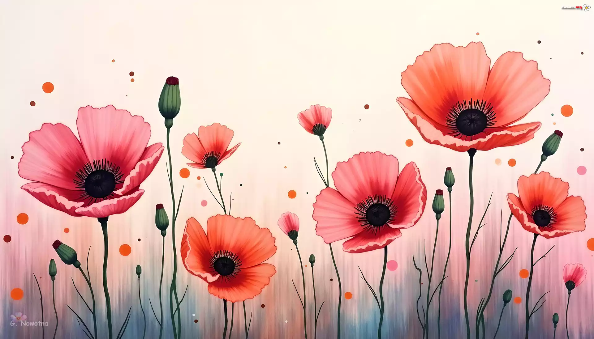 Czerwone, Maki, Pąki, Kwiaty, Jasne, Tło, Grafika - Zdjęcia