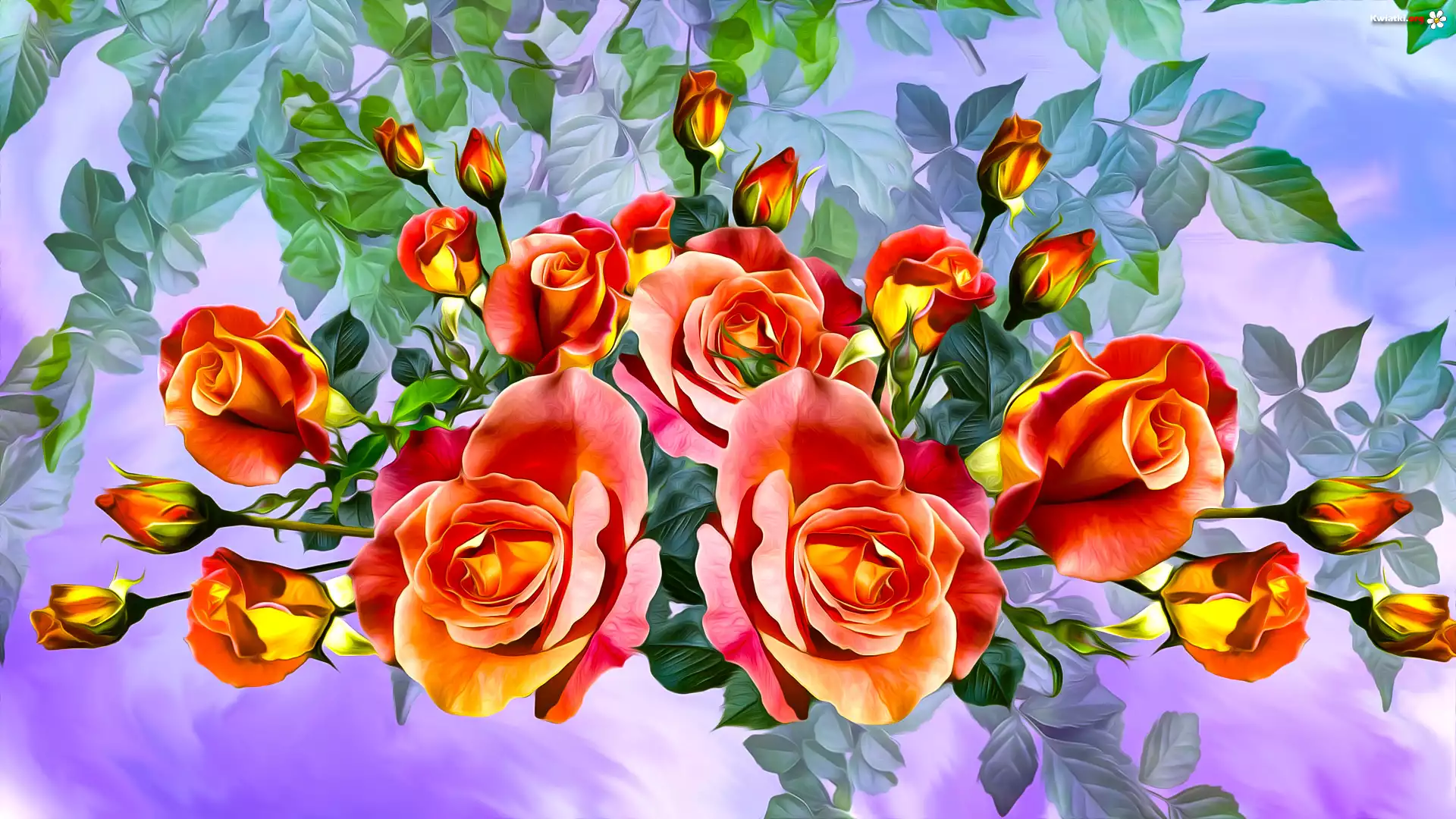 Kwiaty, Rozwinięte, Róże, Pąki, Grafika - Zdjęcia
