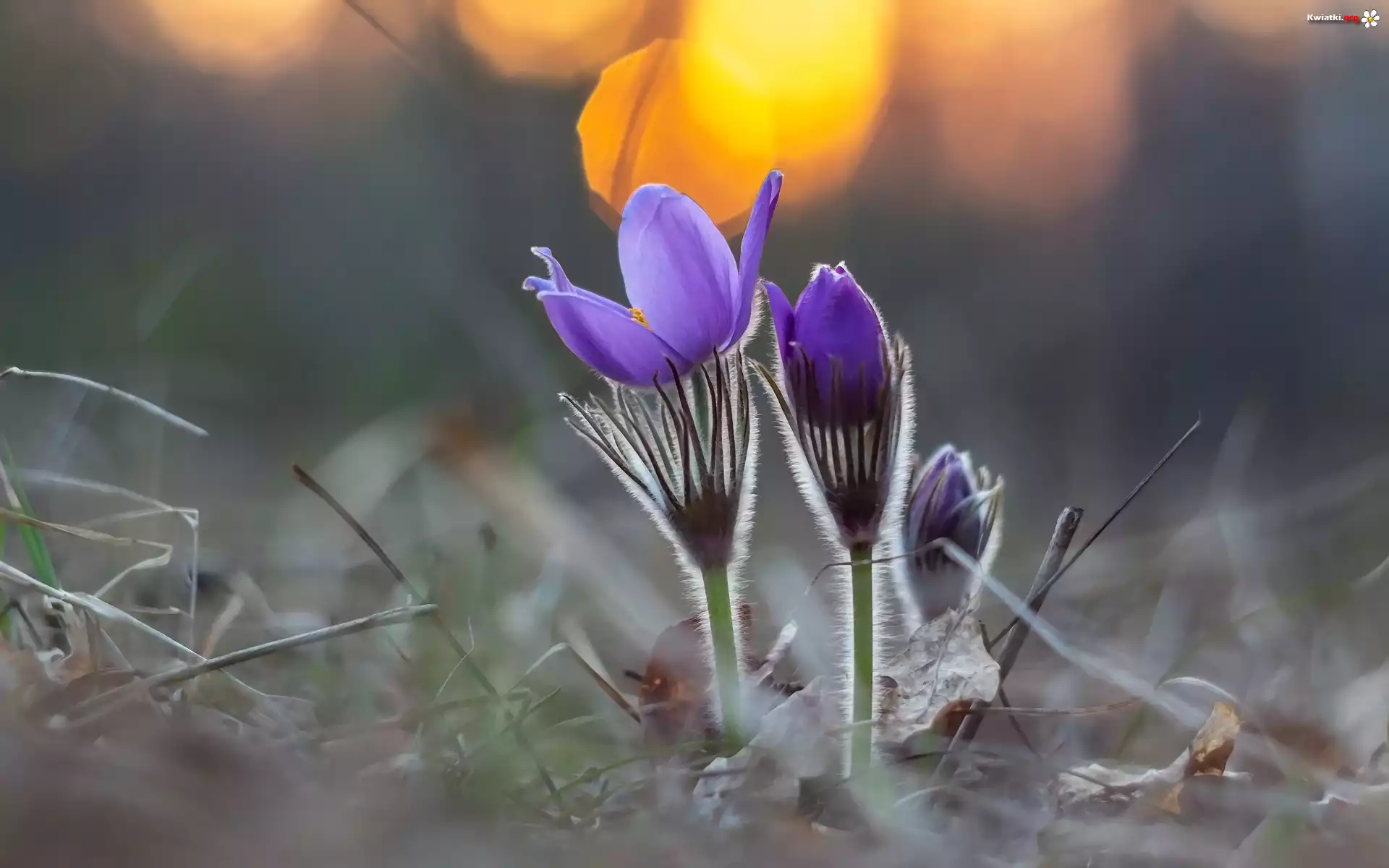 Kwiat Kwiaty, Fioletowe, Sasanki, Pąki, Zbliżenie