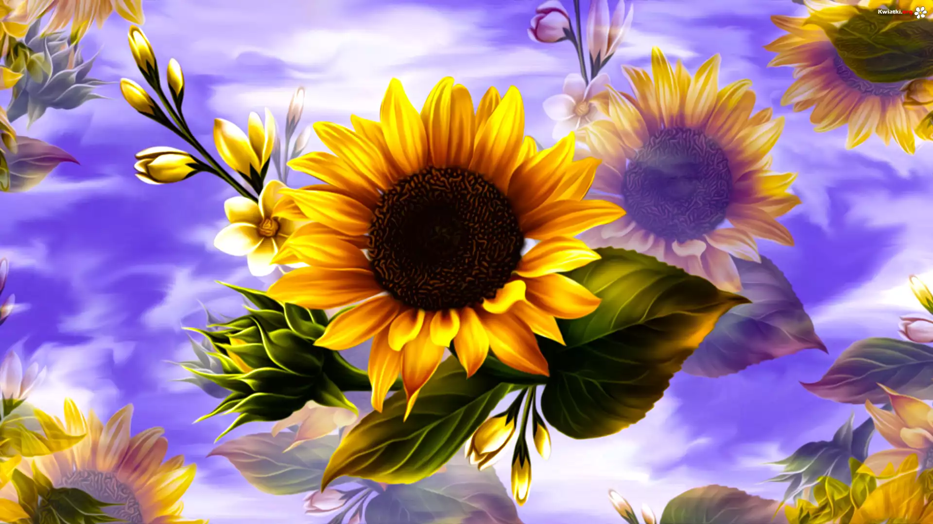 Kwiaty, Słonecznik, Pąki, Grafika - Zdjęcia