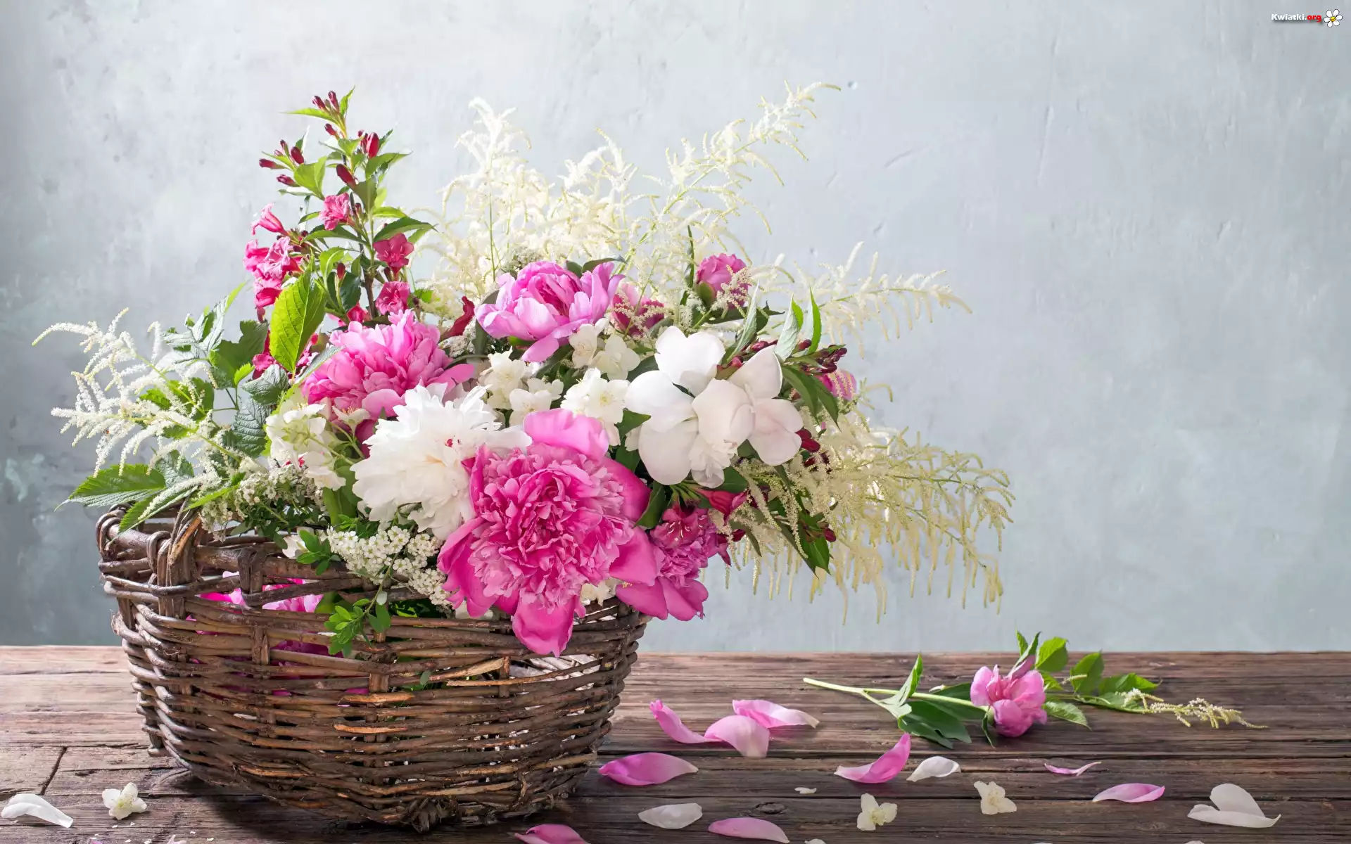 Kwiaty, Bukiet, Piwonie, Koszyk - Zdjęcia
