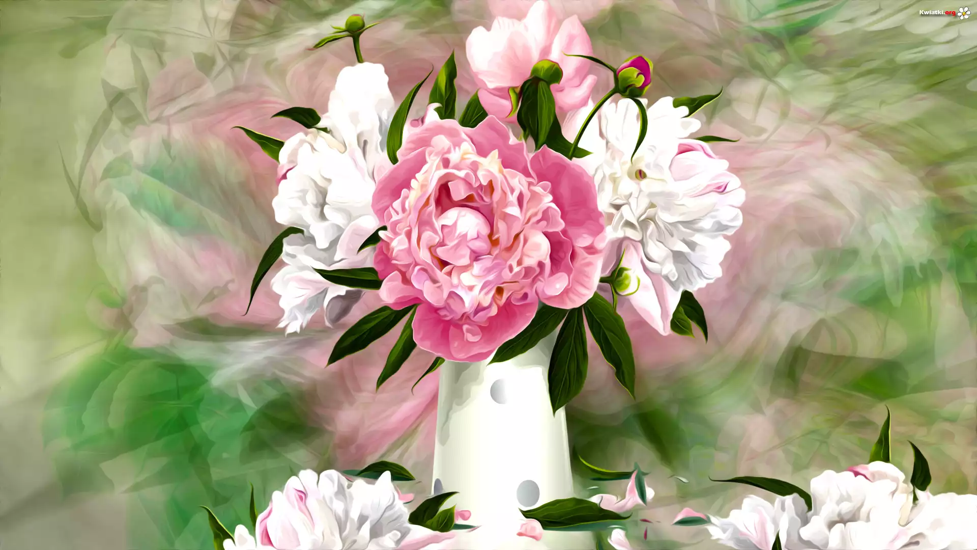 Kwiaty, Wazon, Bukiet, Piwonie, Grafika - Zdjęcia