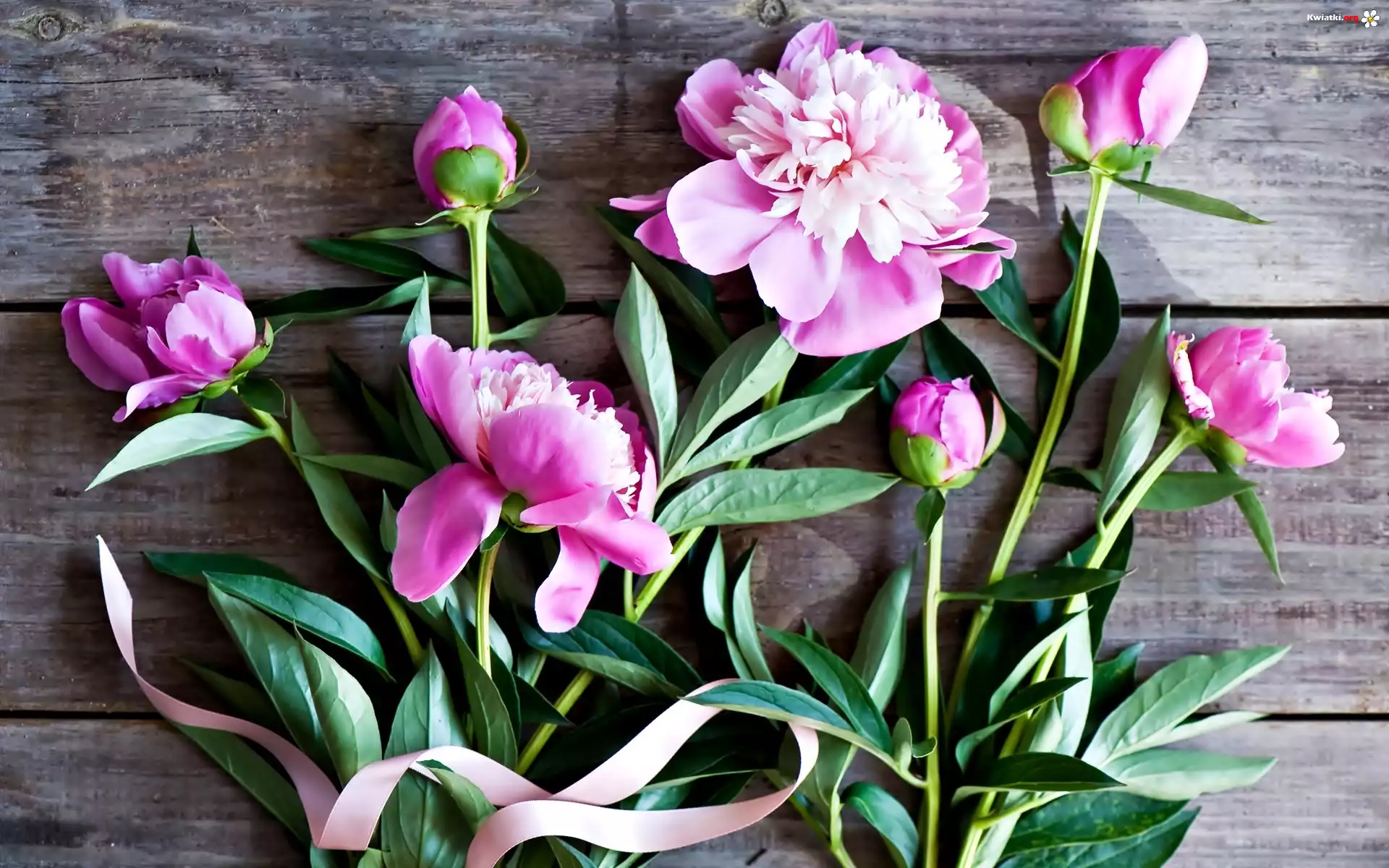 Kwiaty, Pąki, Piwonie, Wstązka - Zdjęcia