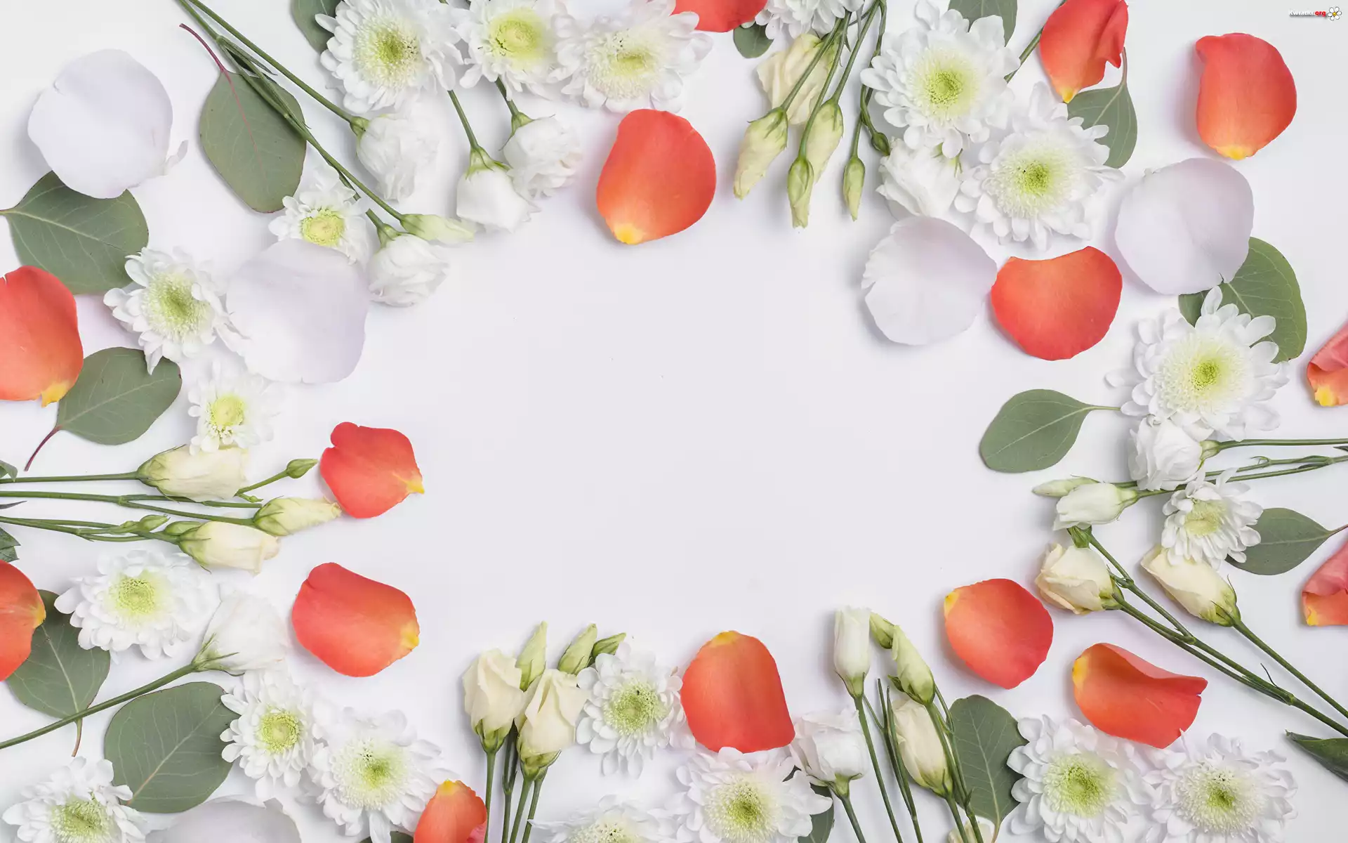 Kwiaty, Eustoma, Chryzantemy, Płatki, Czerwone - Zdjęcia
