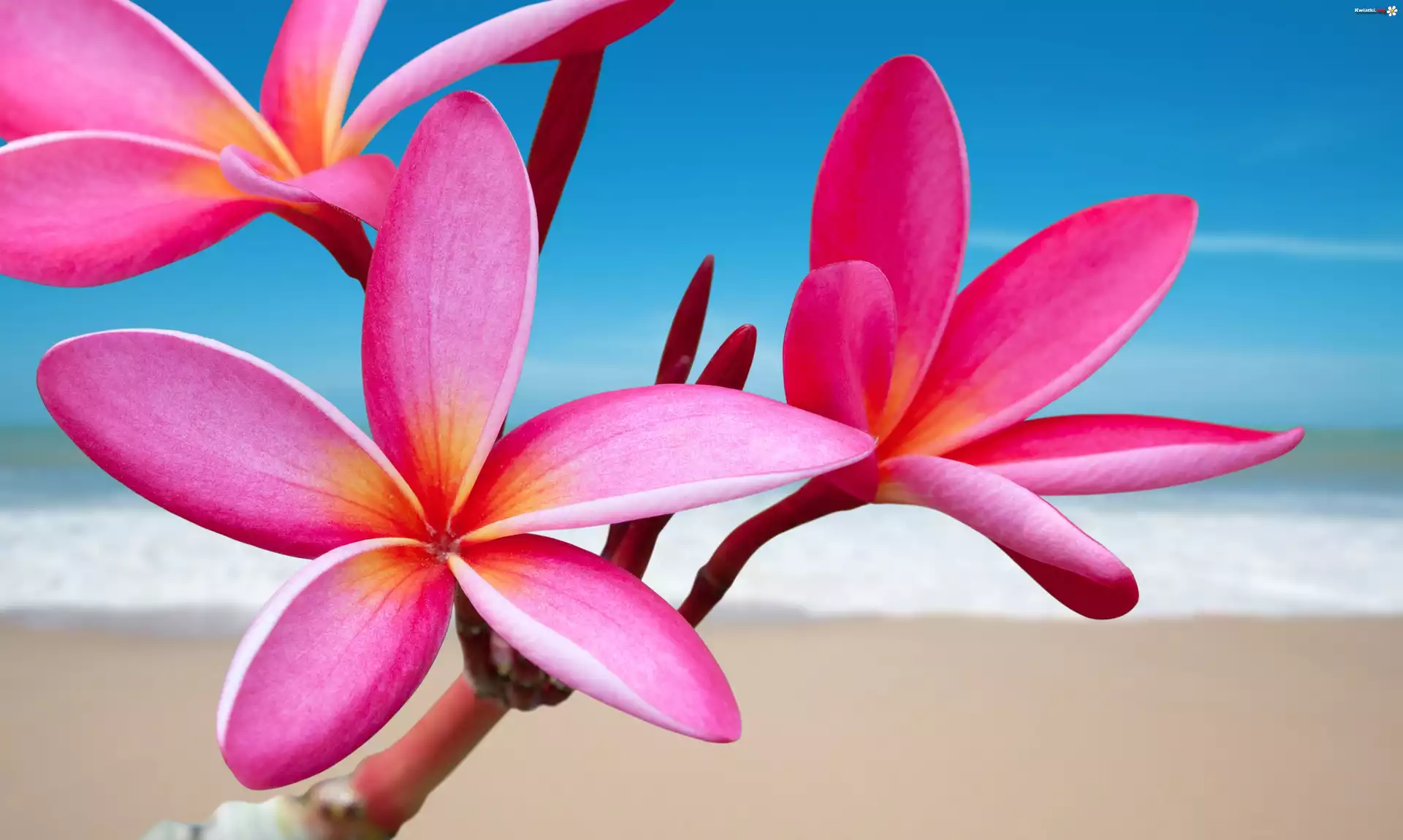 Kwiat Kwiaty, Plumeria, Rózowa, Plaża, Morze