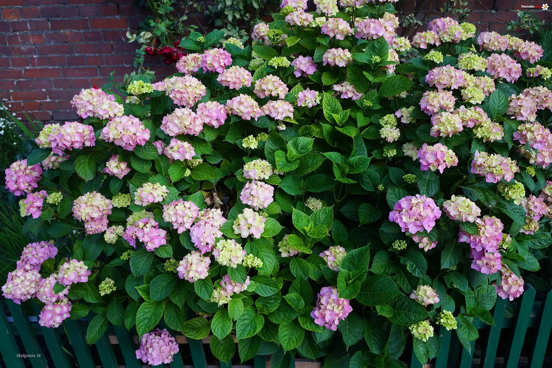 Kwiaty, Hortensja, Płotek, Mur - Zdjęcia