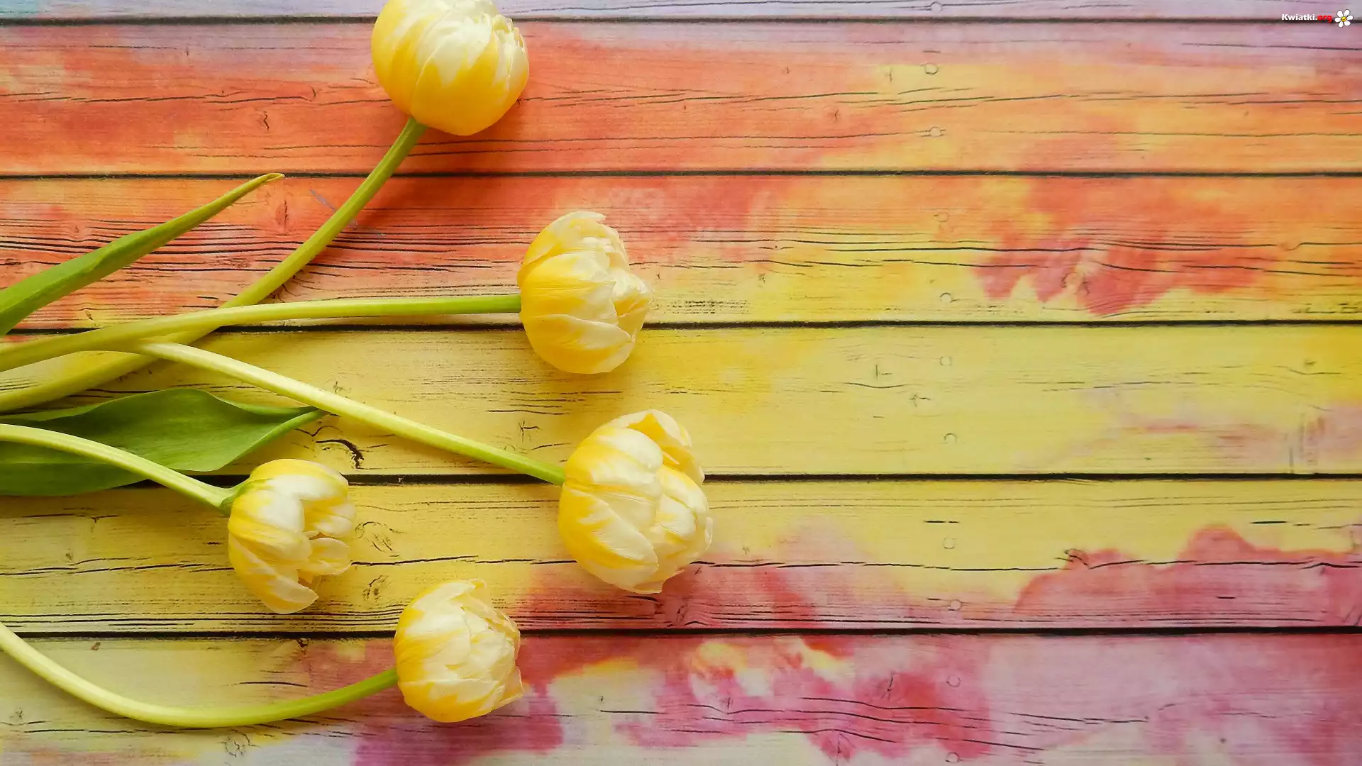Kwiat Kwiaty, Żółte, Tulipany, Pomalowane, Deski