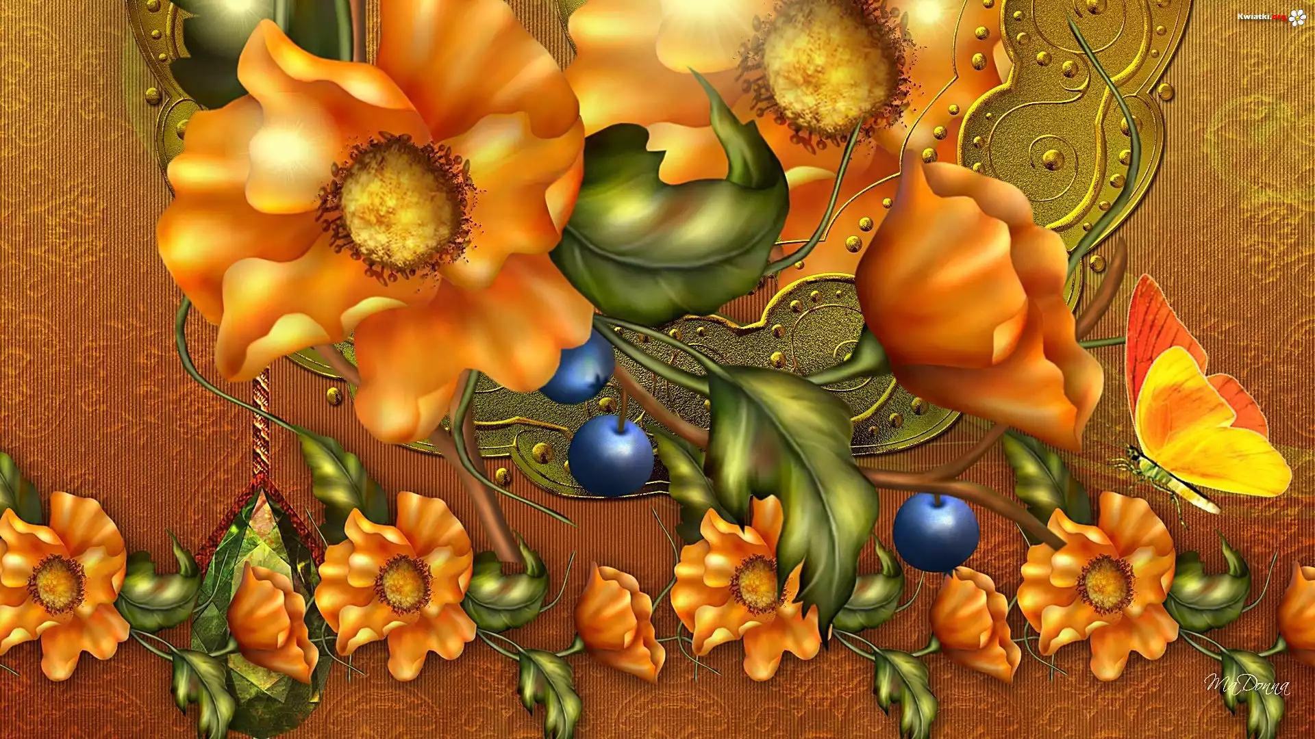 Pomarańczowe, Kwiaty, Art - Zdjęcia
