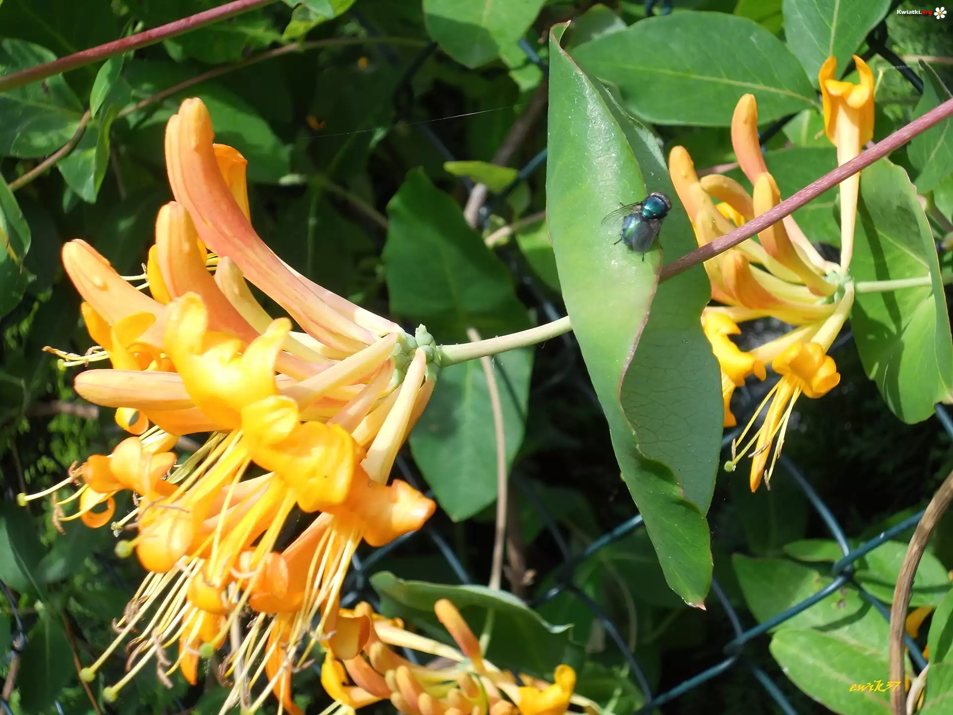 Żółto, Pomarańczowe, Kwiaty, Mucha - Zdjęcia
