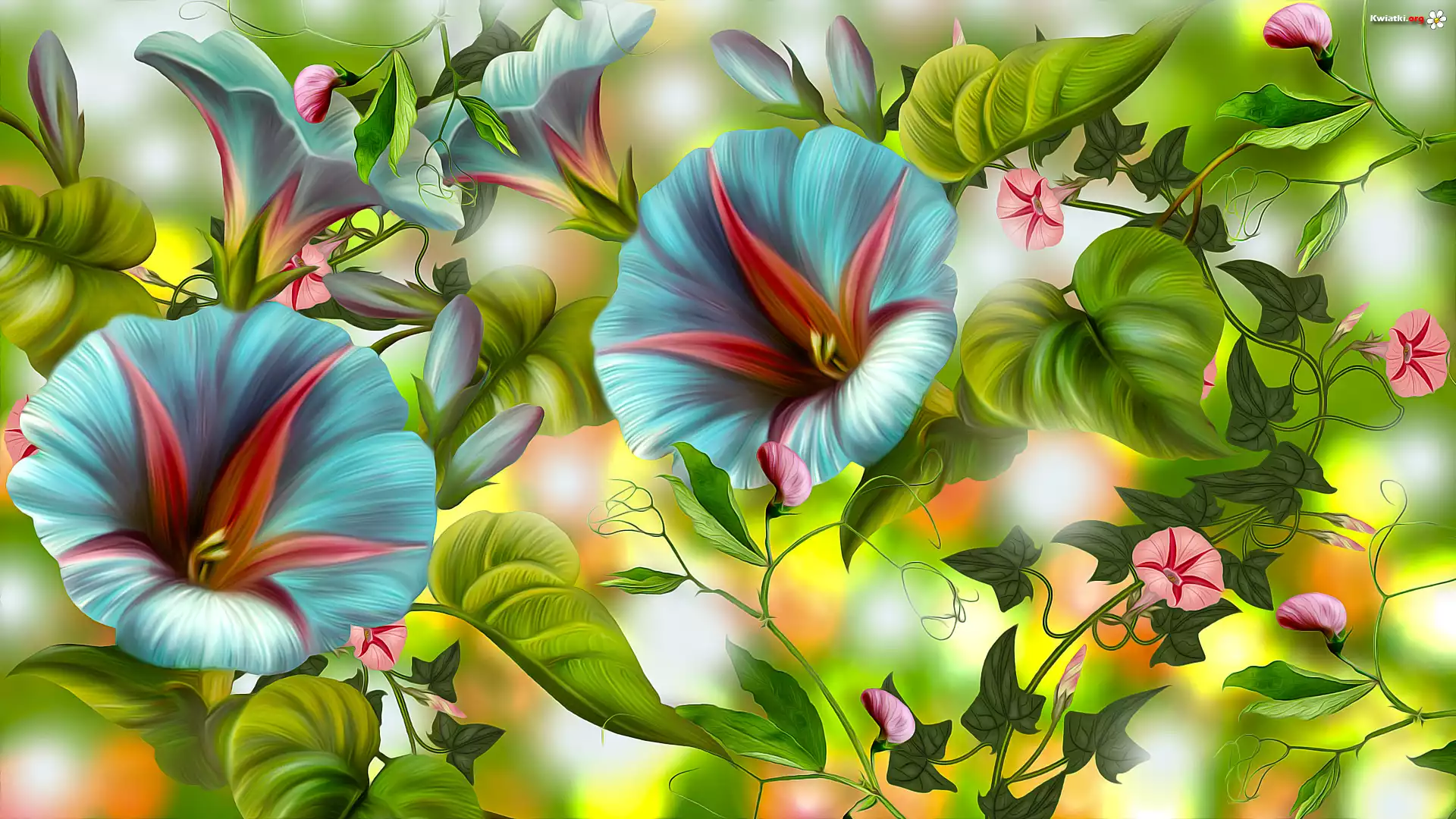 Kwiaty, Niebieskie, Powoje, Grafika - Zdjęcia