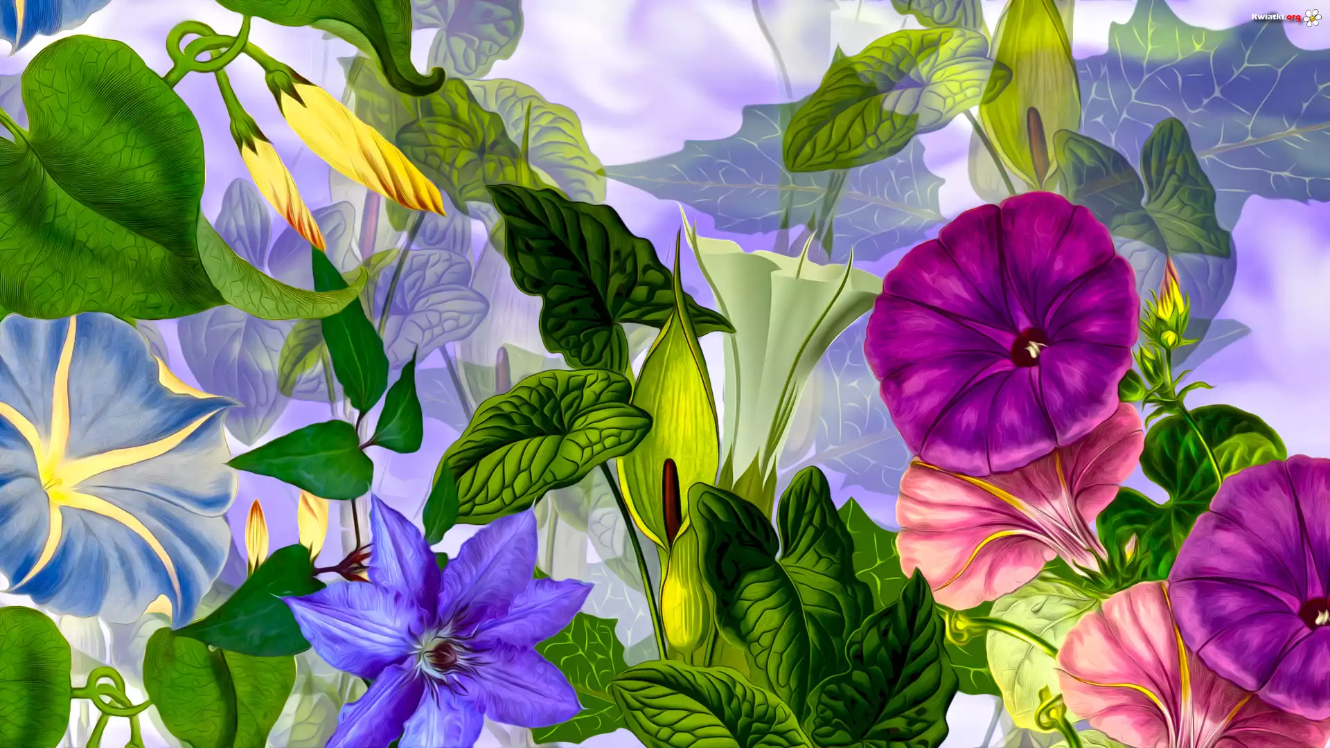Kwiaty, Powój, Powojnik, Grafika - Zdjęcia
