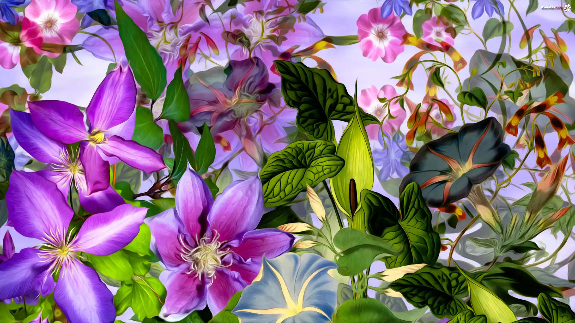 Kwiaty, Powój, Powojnik, Grafika - Zdjęcia