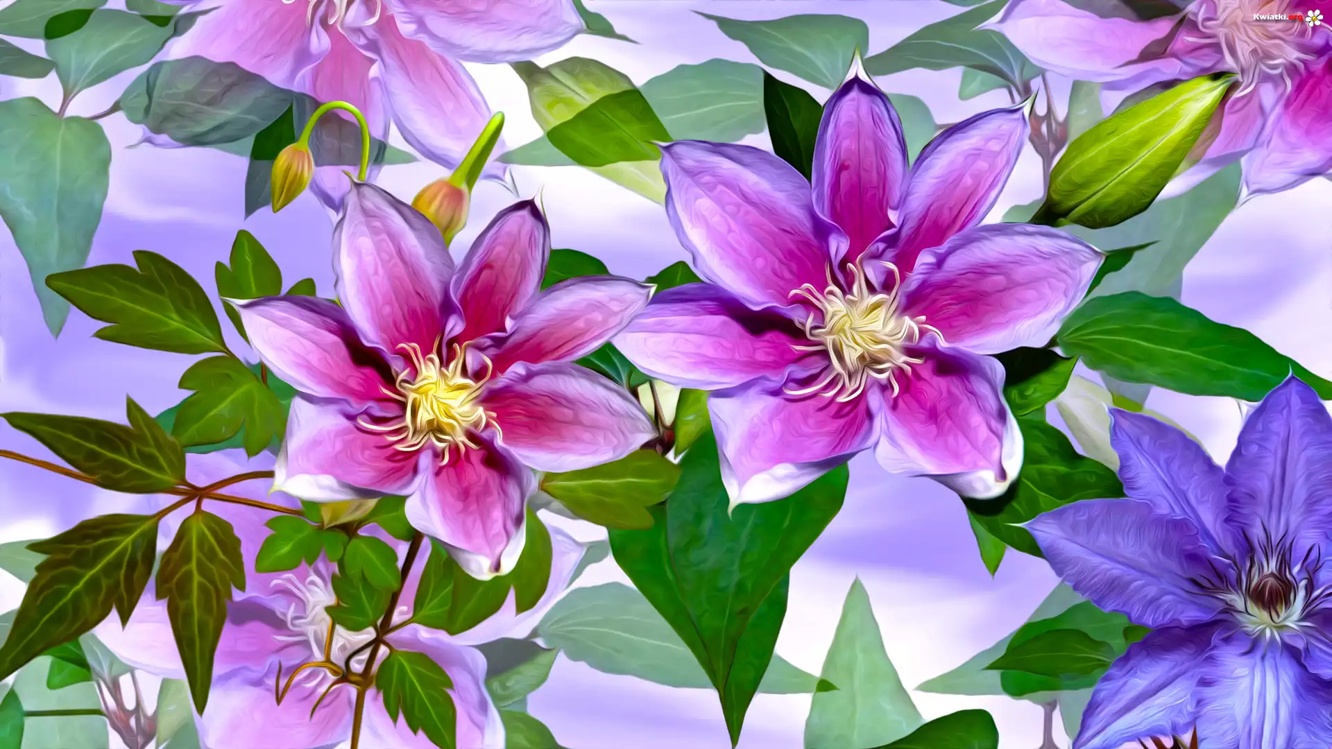 Kwiaty, Różowe, Fioletowy, Powojniki, Grafika - Zdjęcia