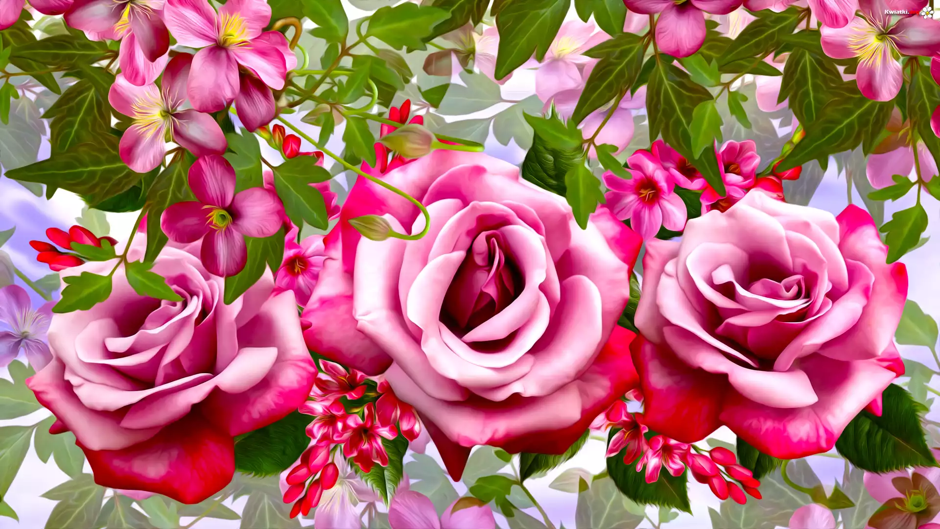 Kwiaty, Róże, Powojniki, Grafika - Zdjęcia