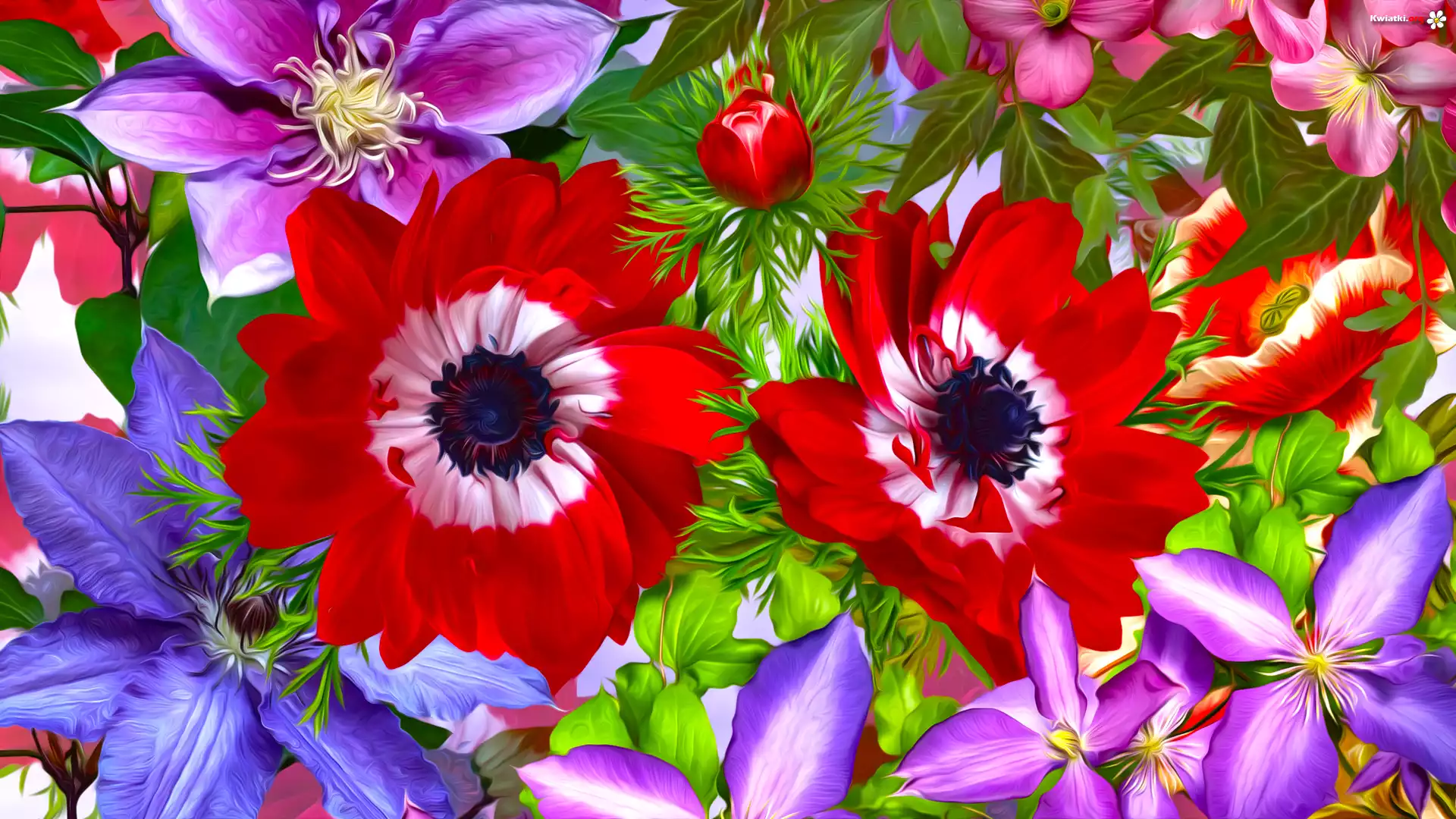 Kwiaty, Zawilce, Powojniki, Grafika - Zdjęcia