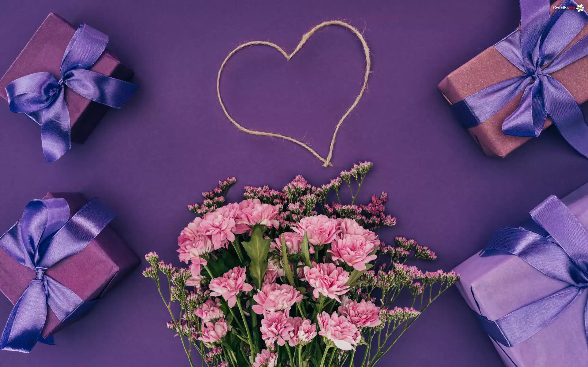 Kwiaty, Chryzantemy, Bukiet, Prezenty, Serce - Zdjęcia