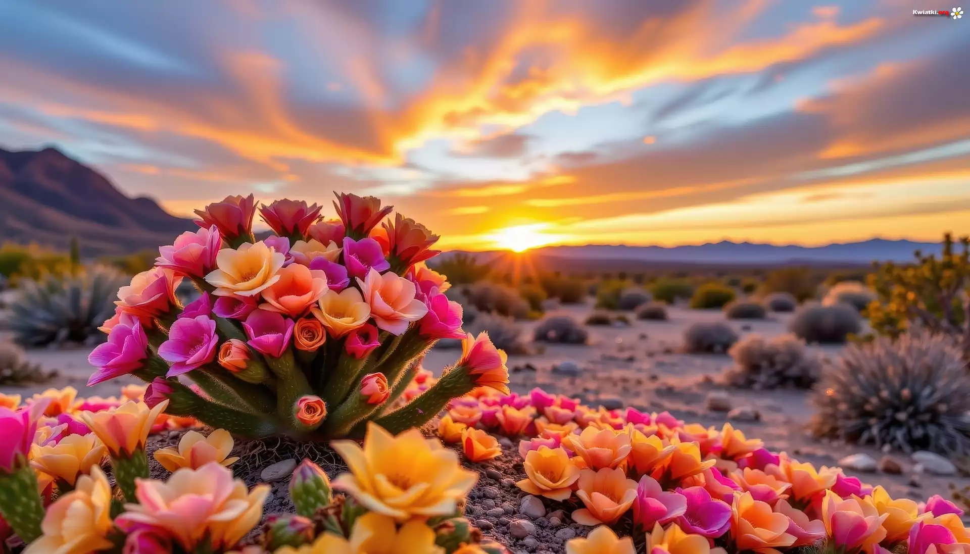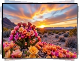 Kaktus, Kwiaty, Promienie słońca, AI - Zdjęcia