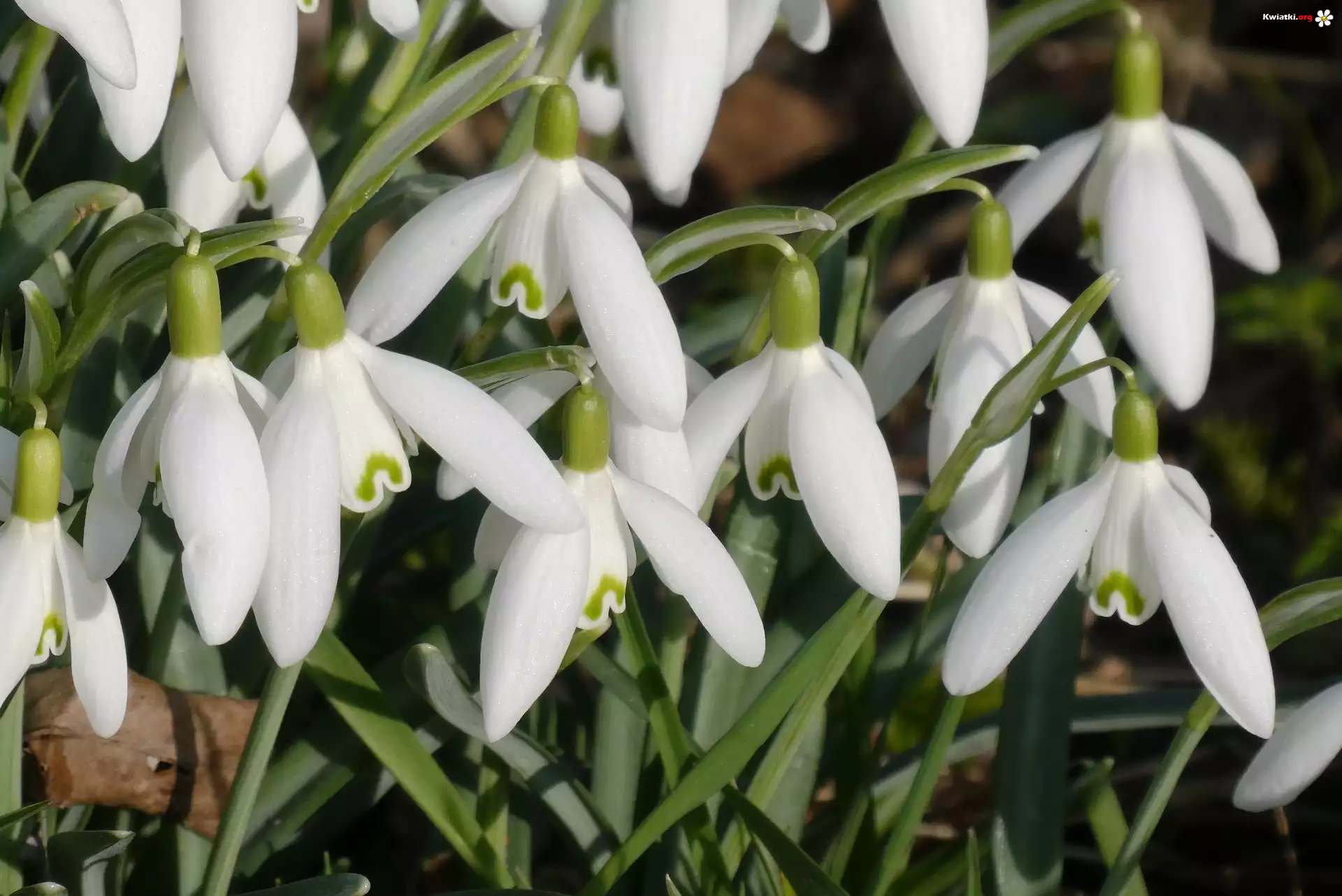 Kwiaty, Białe, Przebiśniegi, Liście - Zdjęcia