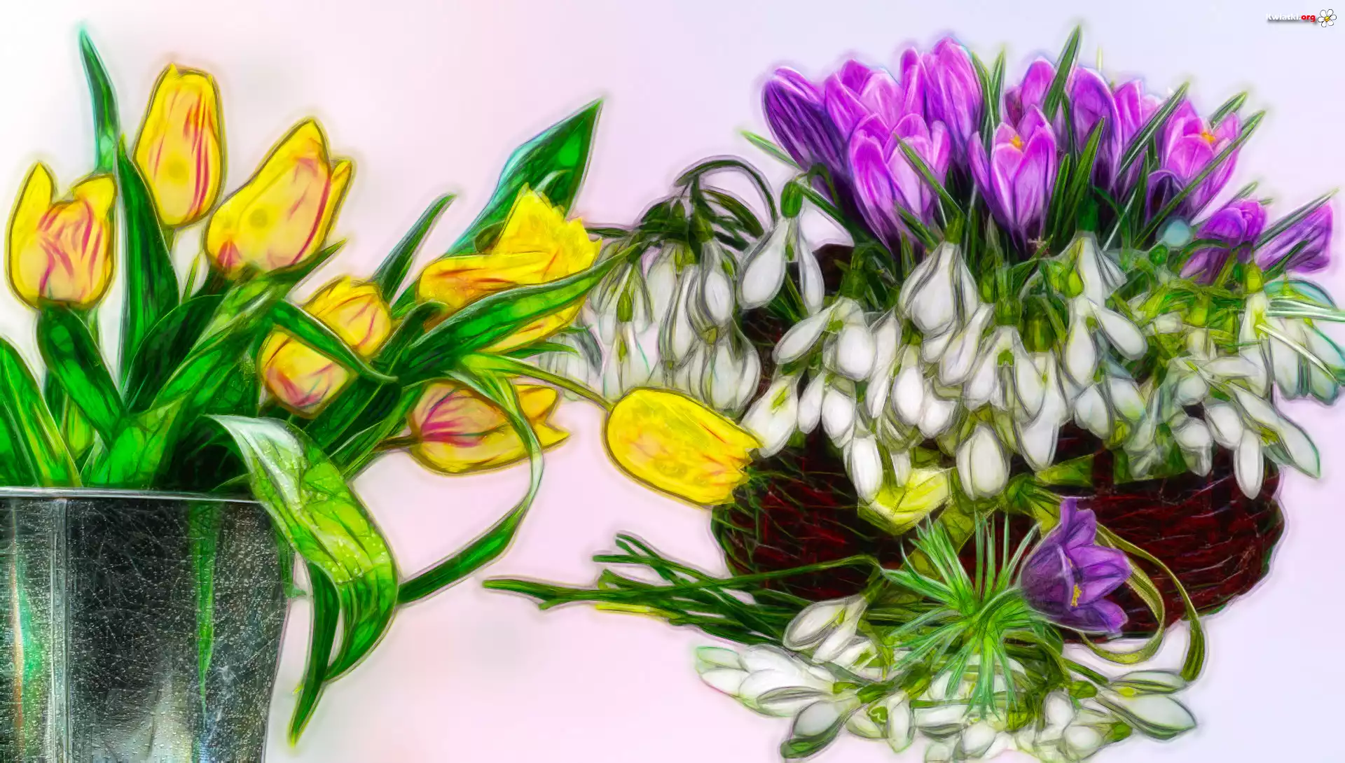 Kwiaty, Tulipany, Krokusy, Przebiśniegi, Grafika - Zdjęcia