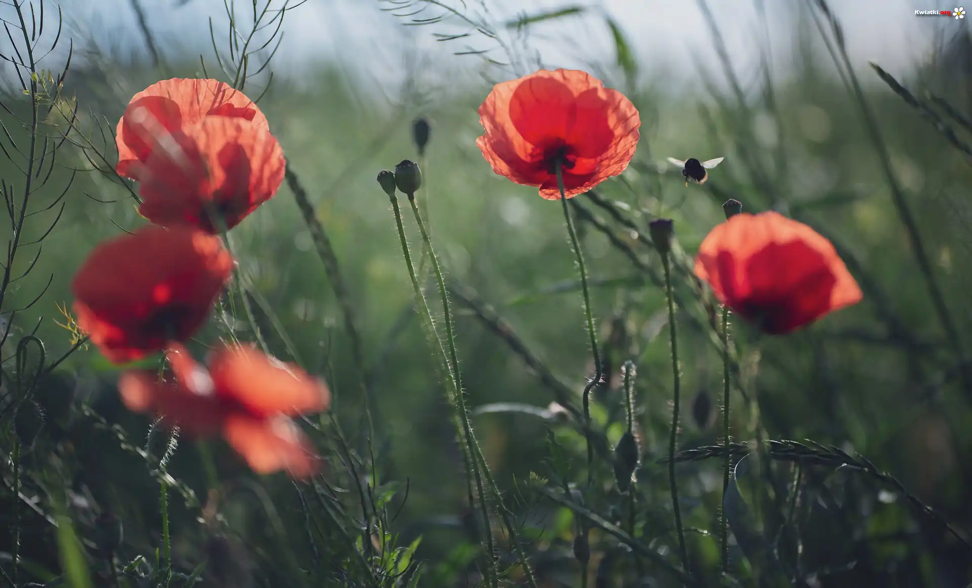 Kwiaty, Maki, Pszczoła, Rozmycie - Zdjęcia
