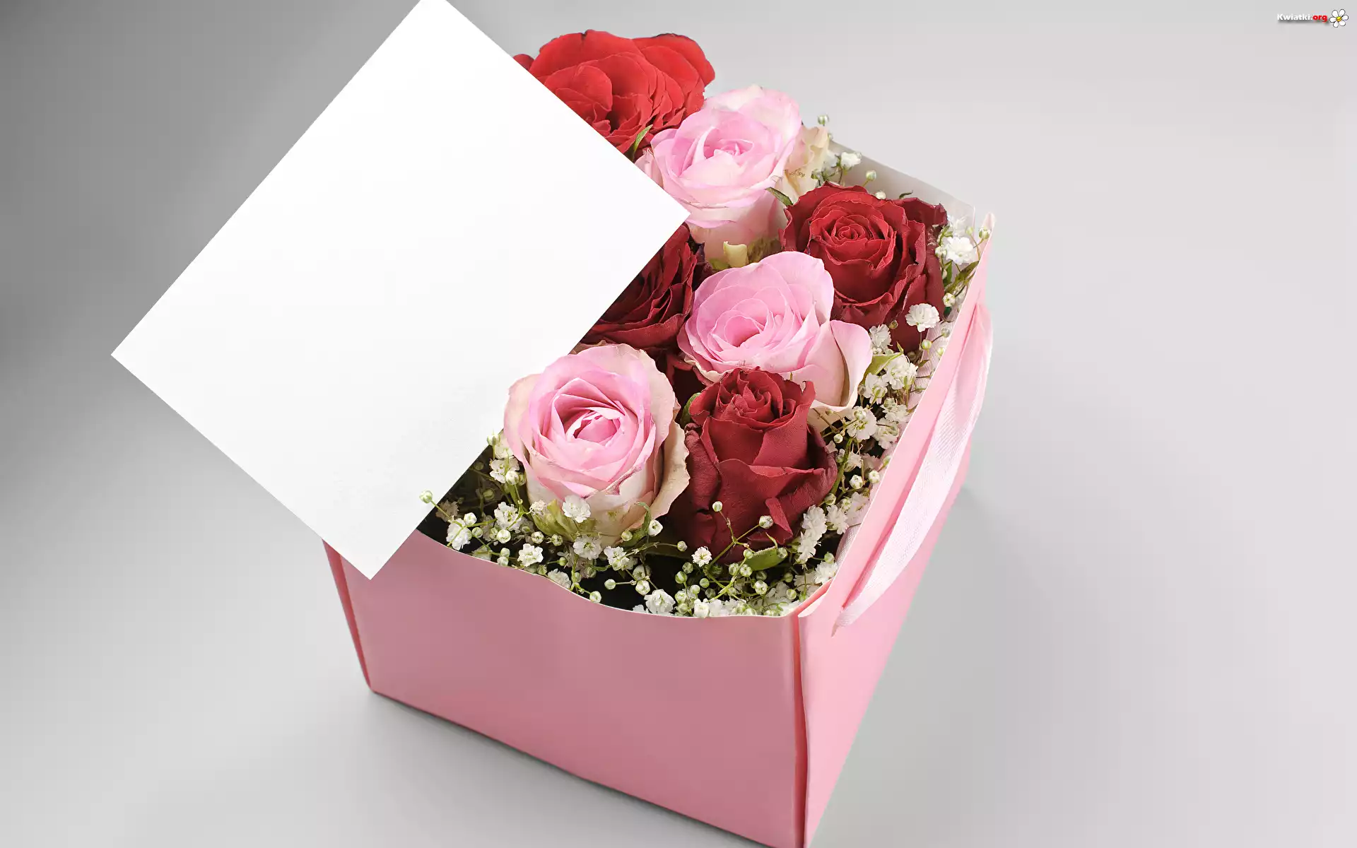 Kwiaty, Róże, Kolorowe, Pudełko, Kartka - Zdjęcia
