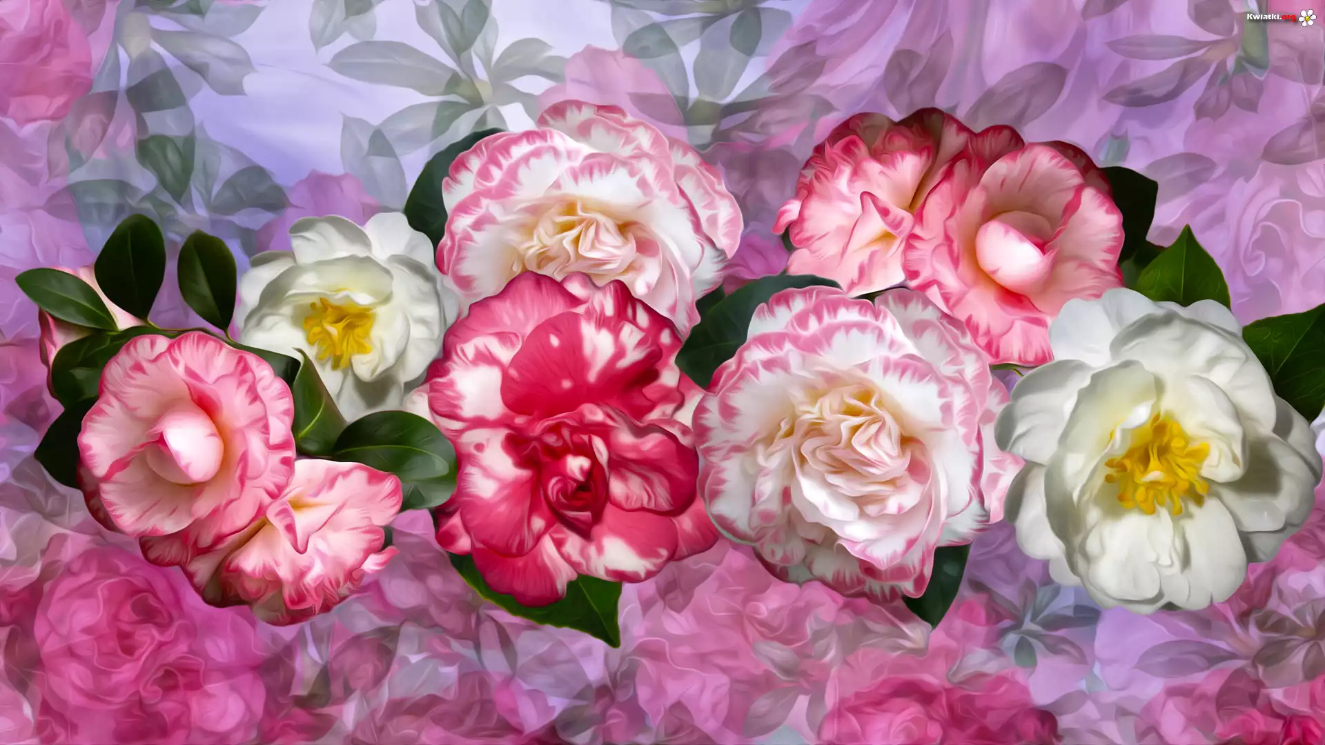 Kwiaty, Kamelie, Dzika róża, Grafika - Zdjęcia