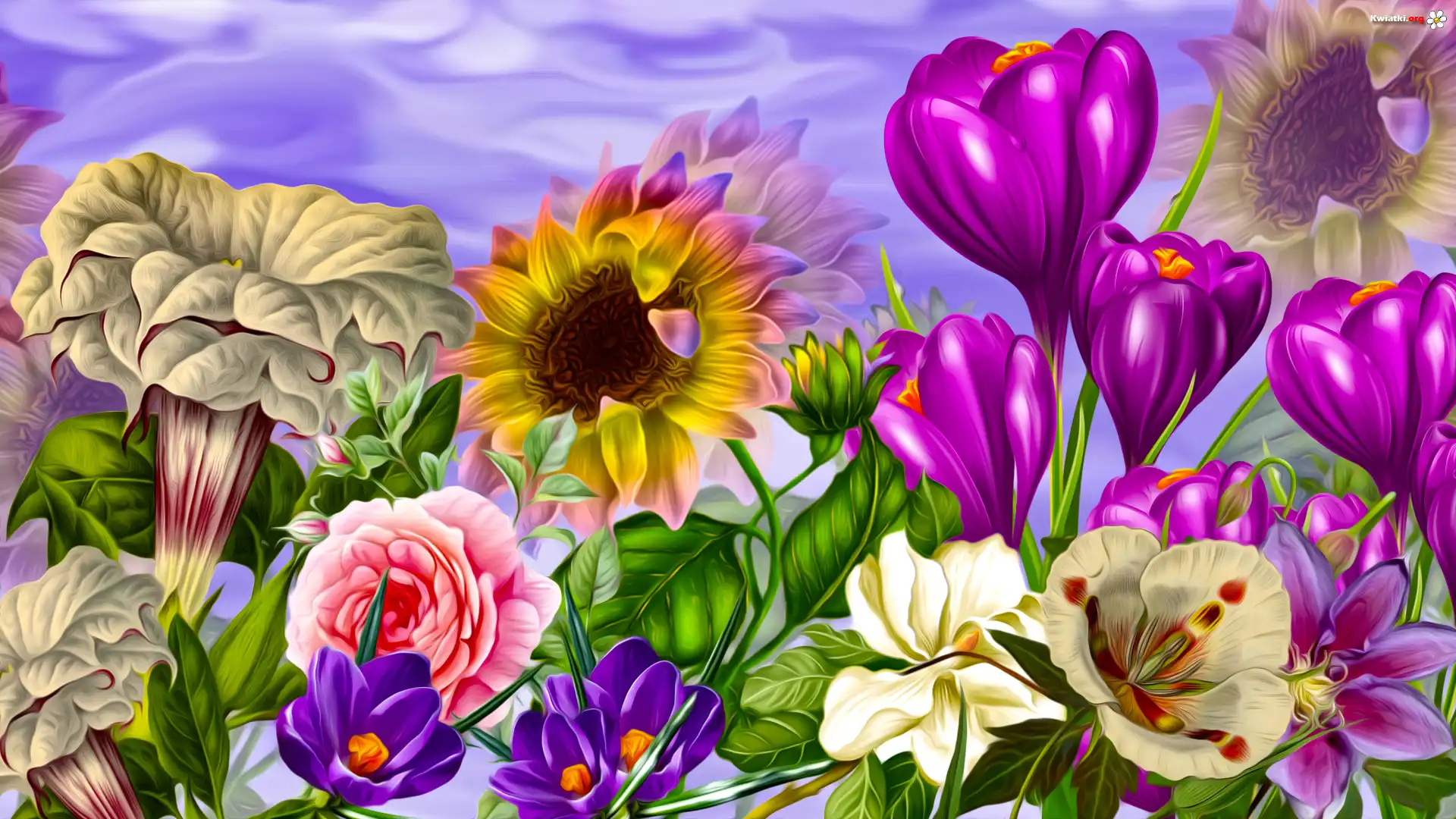 Kwiaty, Słonecznik, Krokus, Róża, Grafika - Zdjęcia