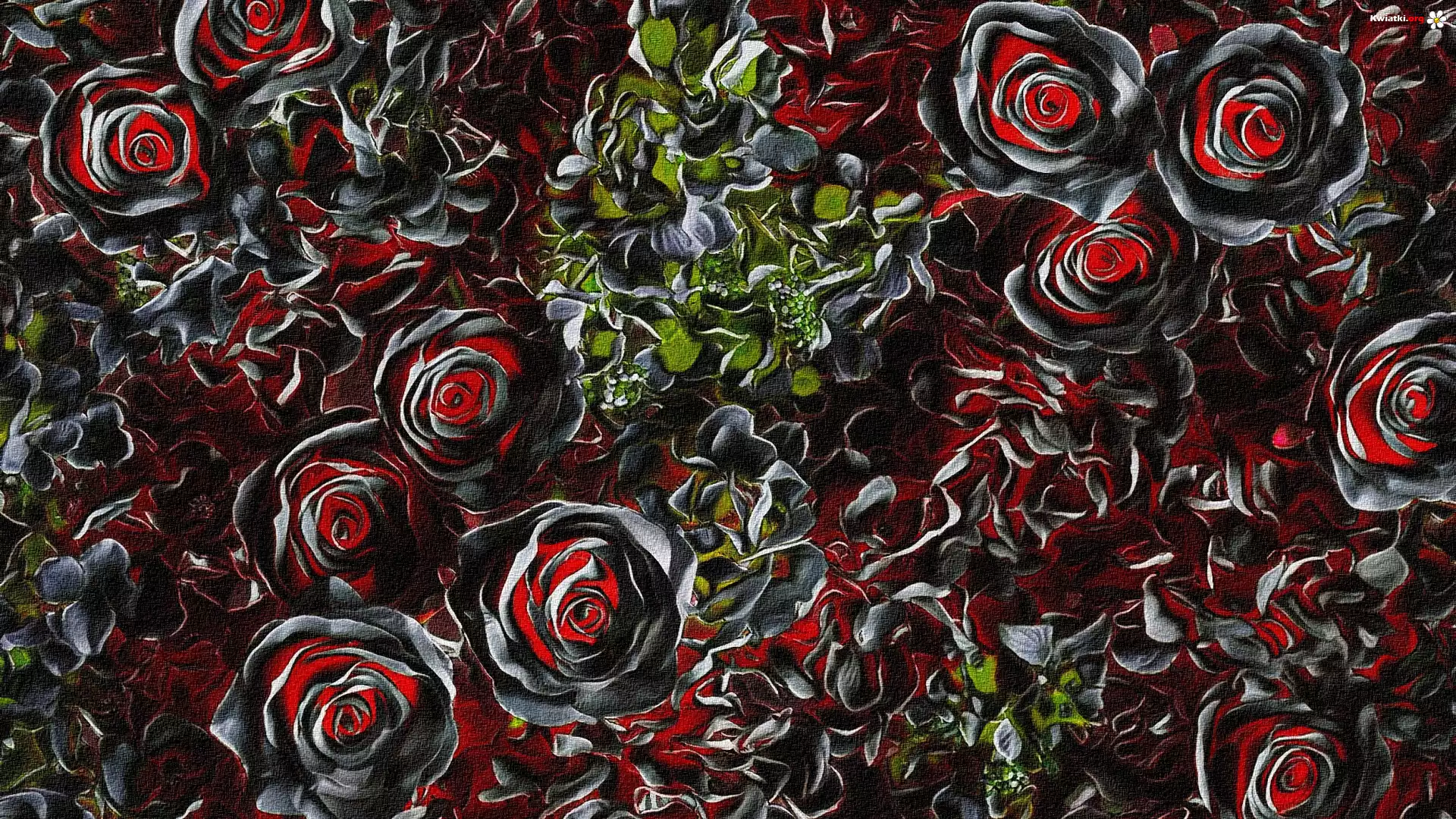 Kwiaty, Czarno-czerwone, Róże, Grafika - Zdjęcia