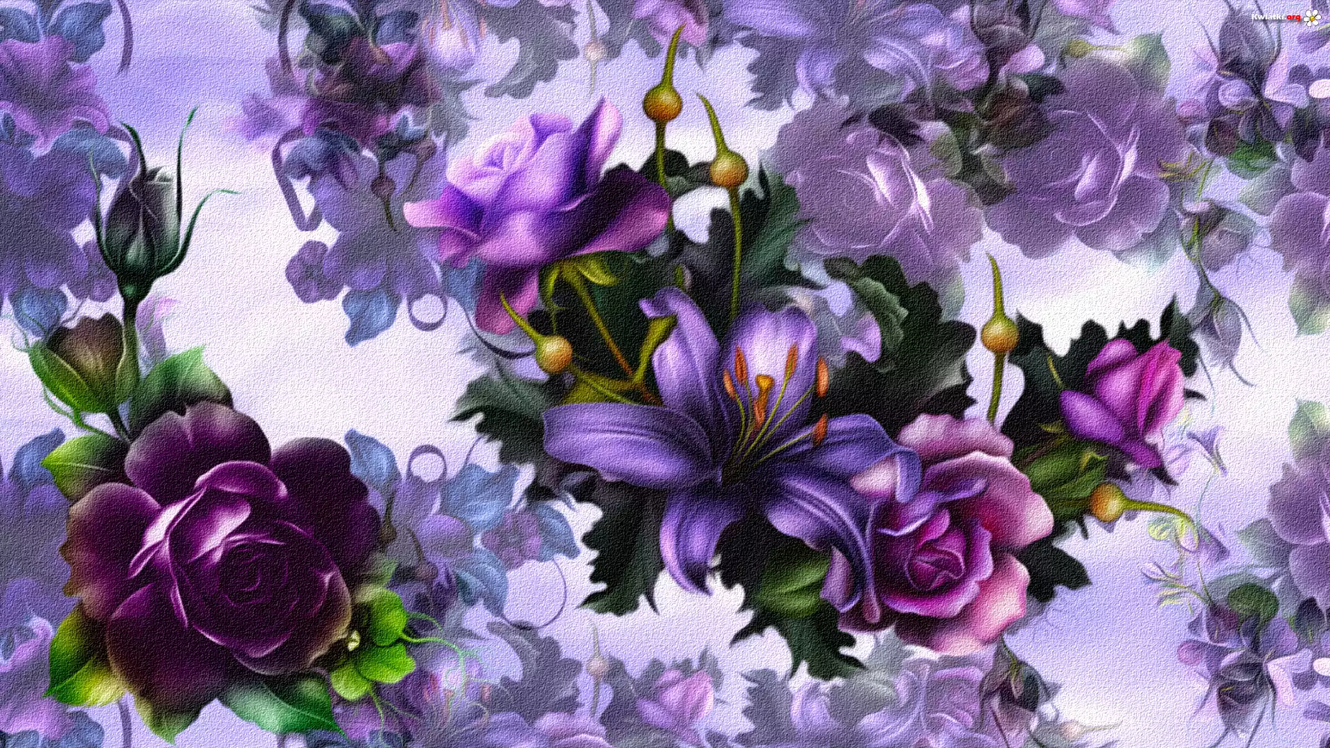 Kwiaty, Lilia, Fioletowe, Róże, Grafika - Zdjęcia