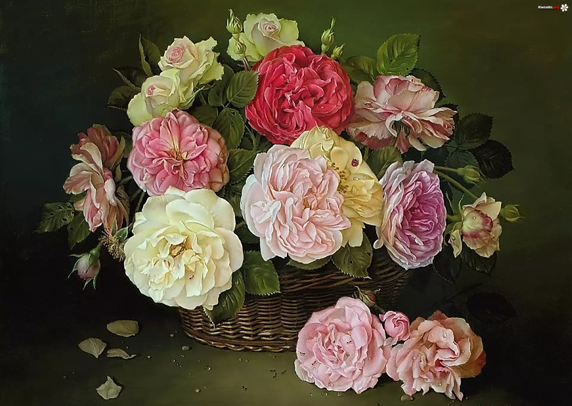 Kwiat Kwiaty, Kolorowe, Róże, Kosz