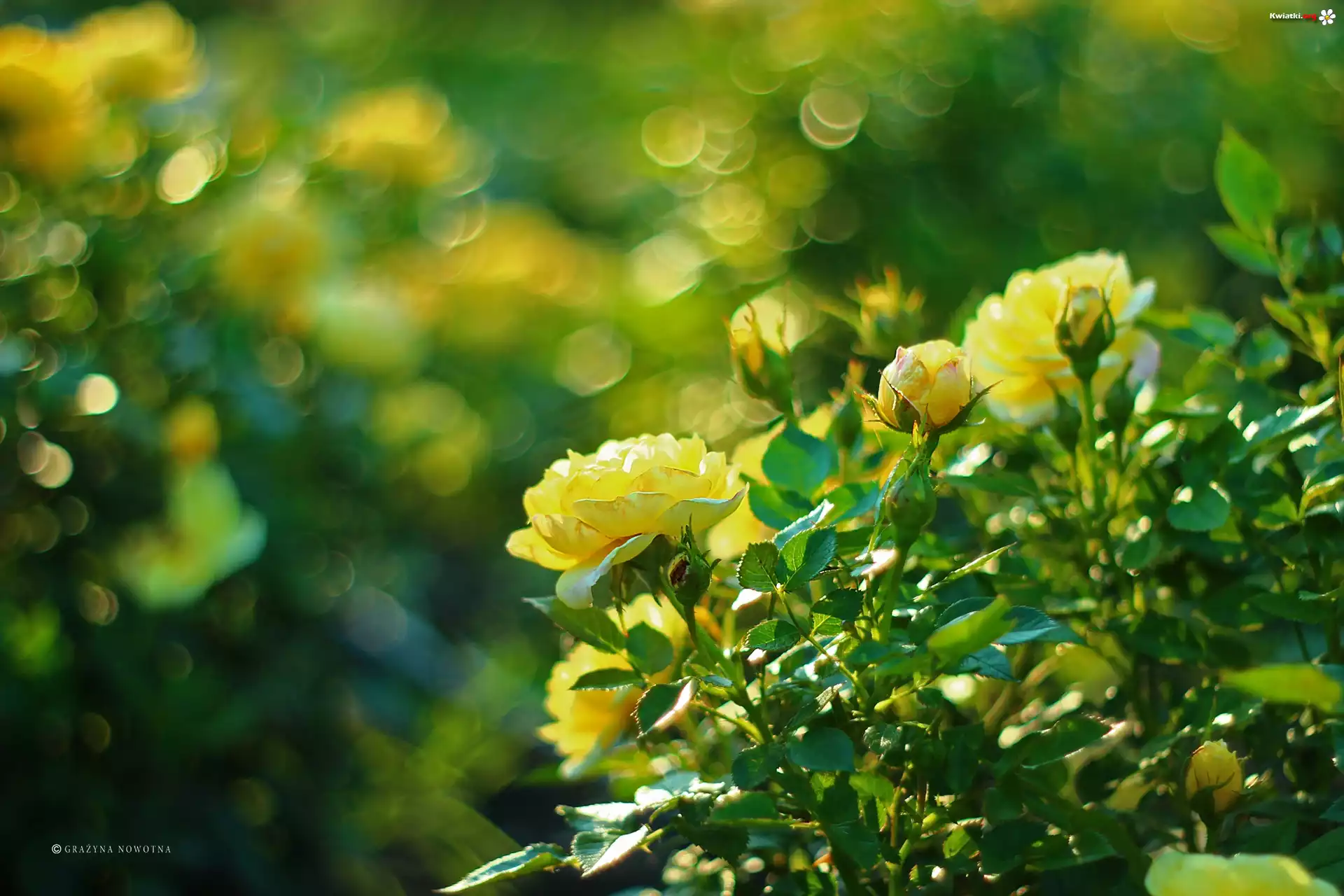 Żółte, Róże, Kwiaty, Bokeh - Zdjęcia
