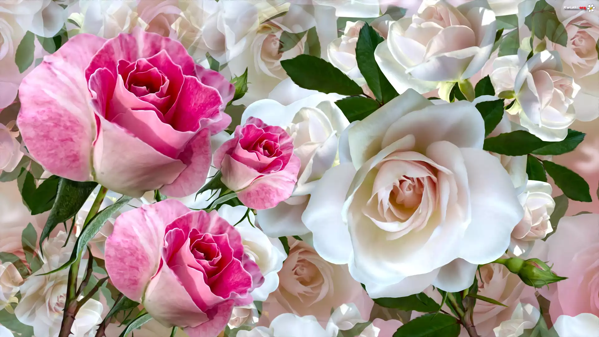 Kwiaty, Białe, Różowe, Róże, Grafika - Zdjęcia