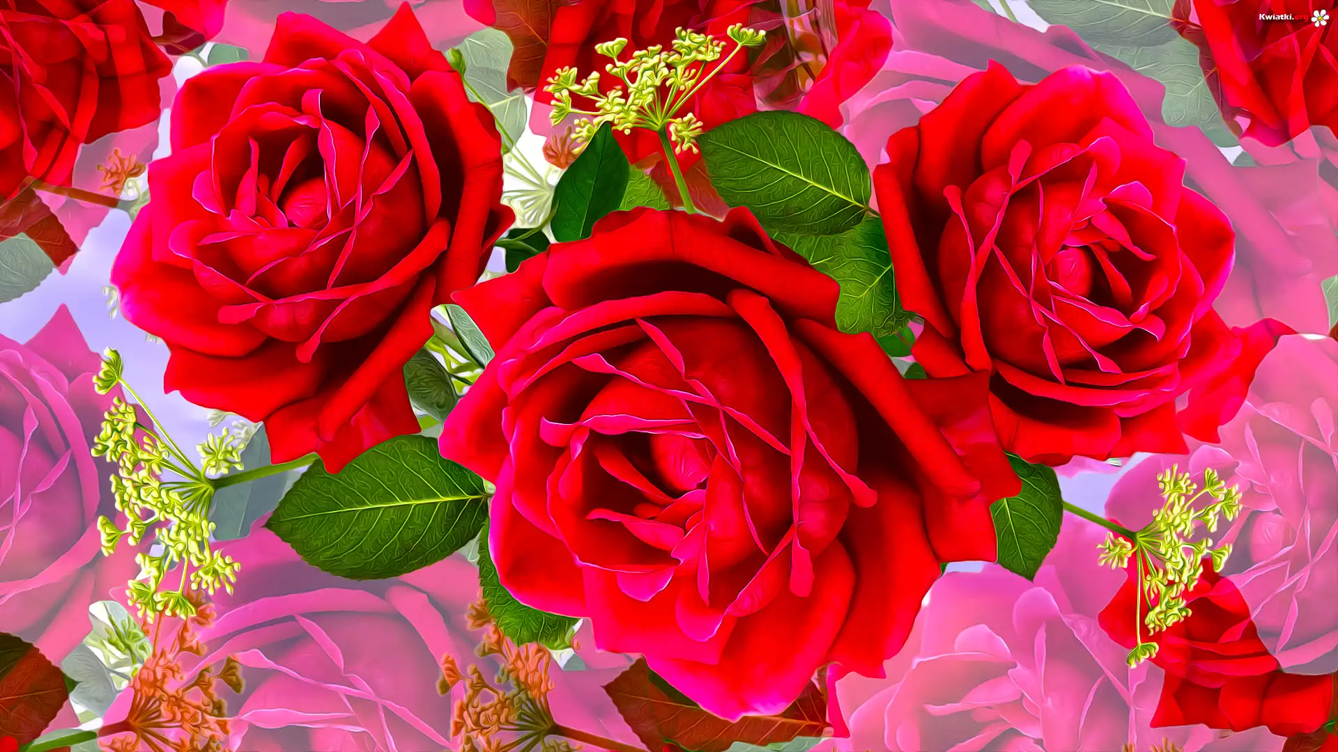 Kwiaty, Czerwone, Rozwinięte, Róże, Grafika - Zdjęcia