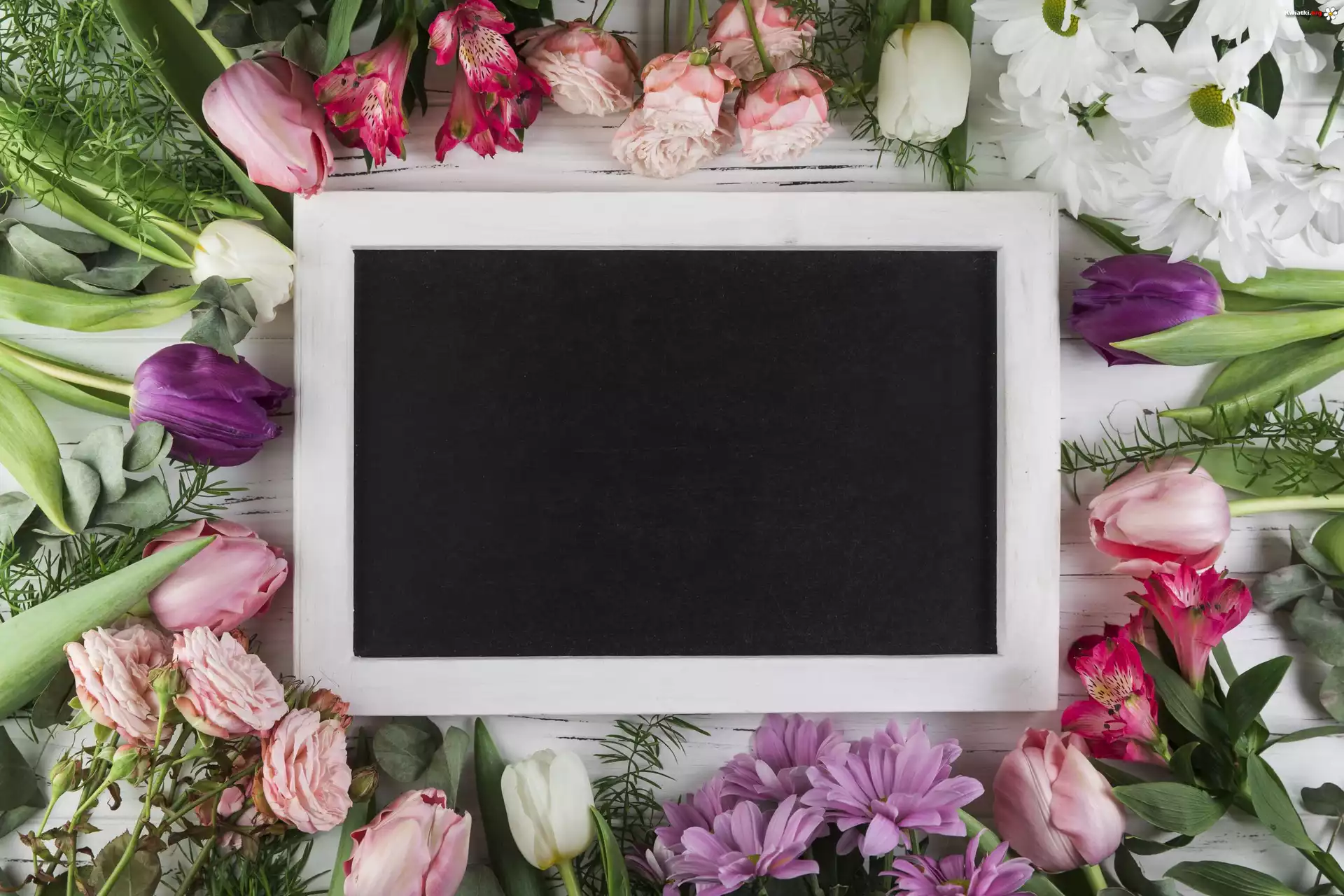 Kwiaty, Tulipany, Róże, Ramka - Zdjęcia