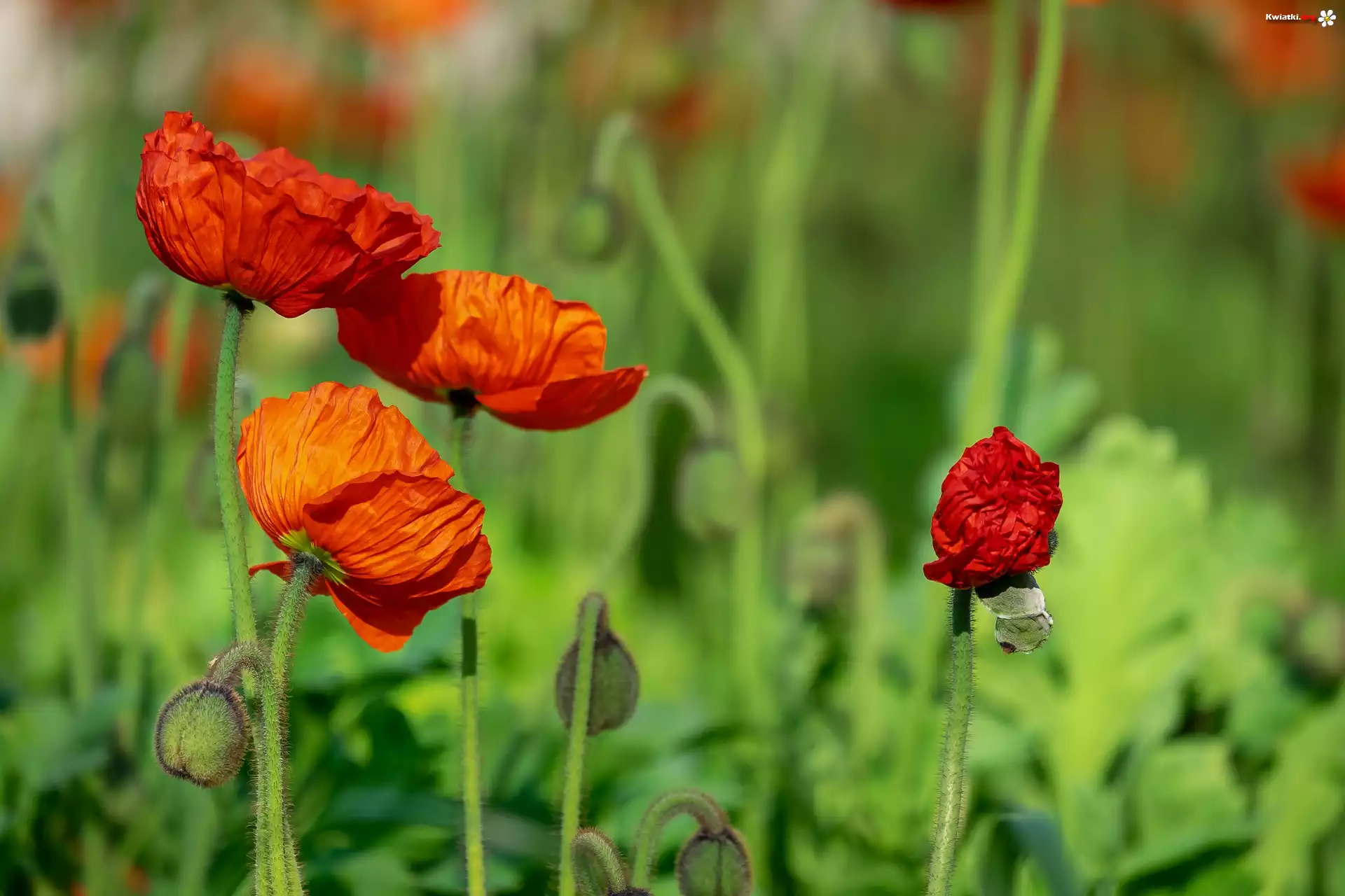 Kwiaty, Maki, Łąka, Rozmyte tło - Zdjęcia