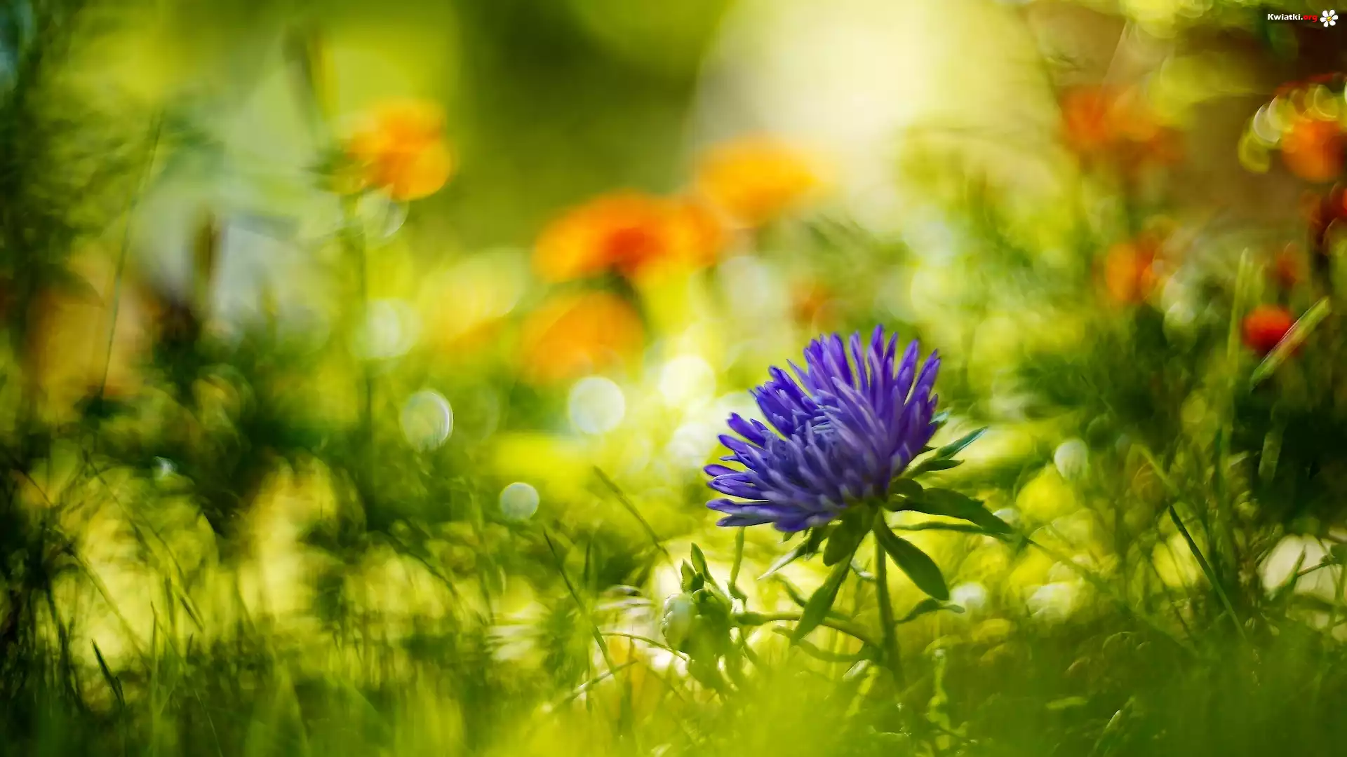 Kwiaty, Aster, Rozmyte tło - Zdjęcia