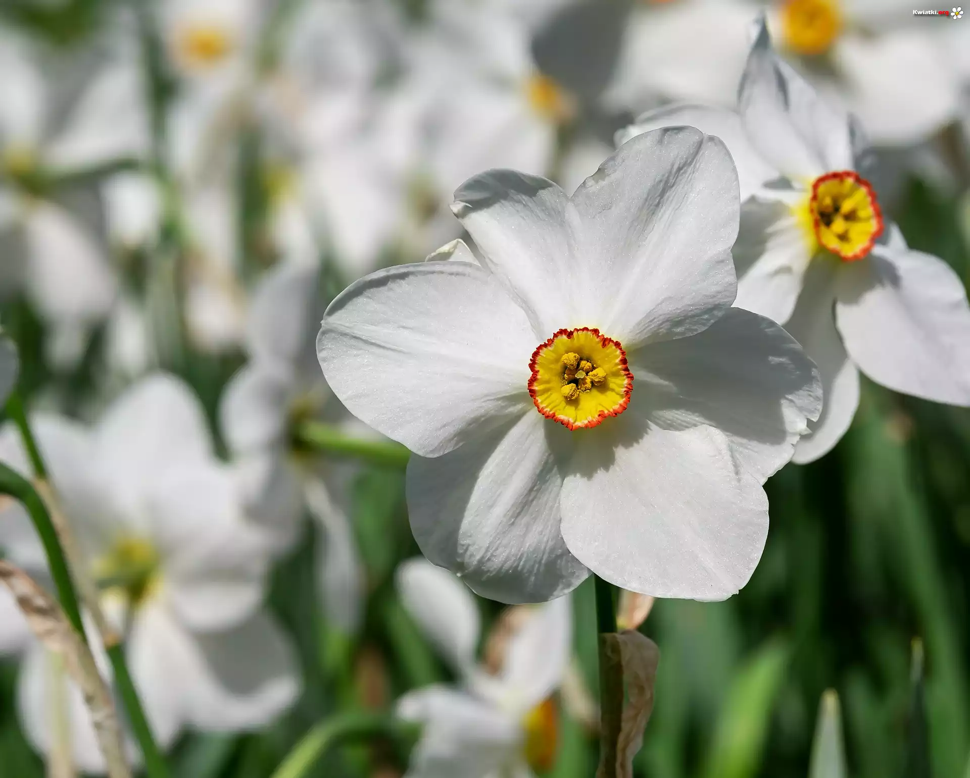 Kwiaty, Narcyzy białe, Rozmyte tło - Zdjęcia