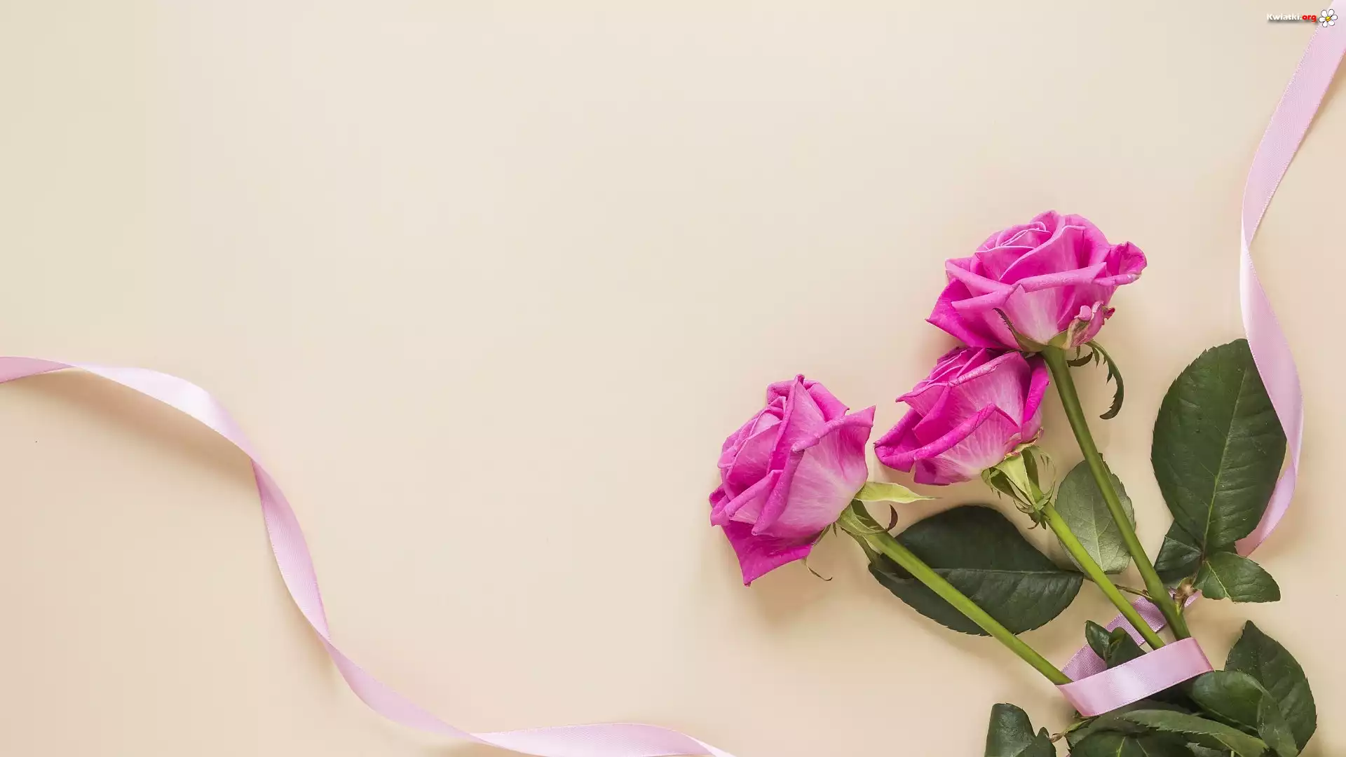 Kwiaty, Trzy, Róże, Różowa, Wstążka - Zdjęcia