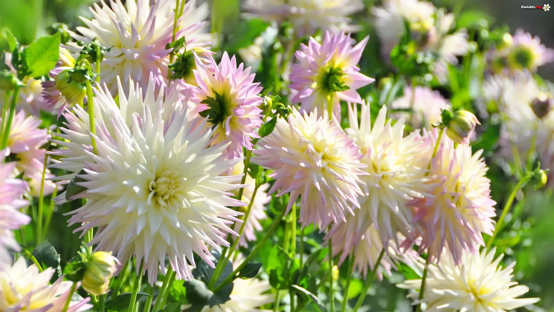 Kwiaty, Biało-różowe, Dalie - Zdjęcia