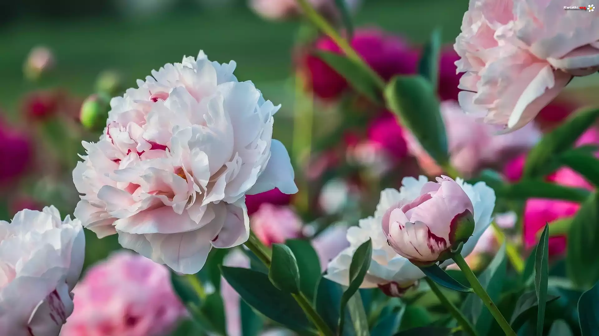 Kwiaty, Biało-różowe, Piwonie - Zdjęcia