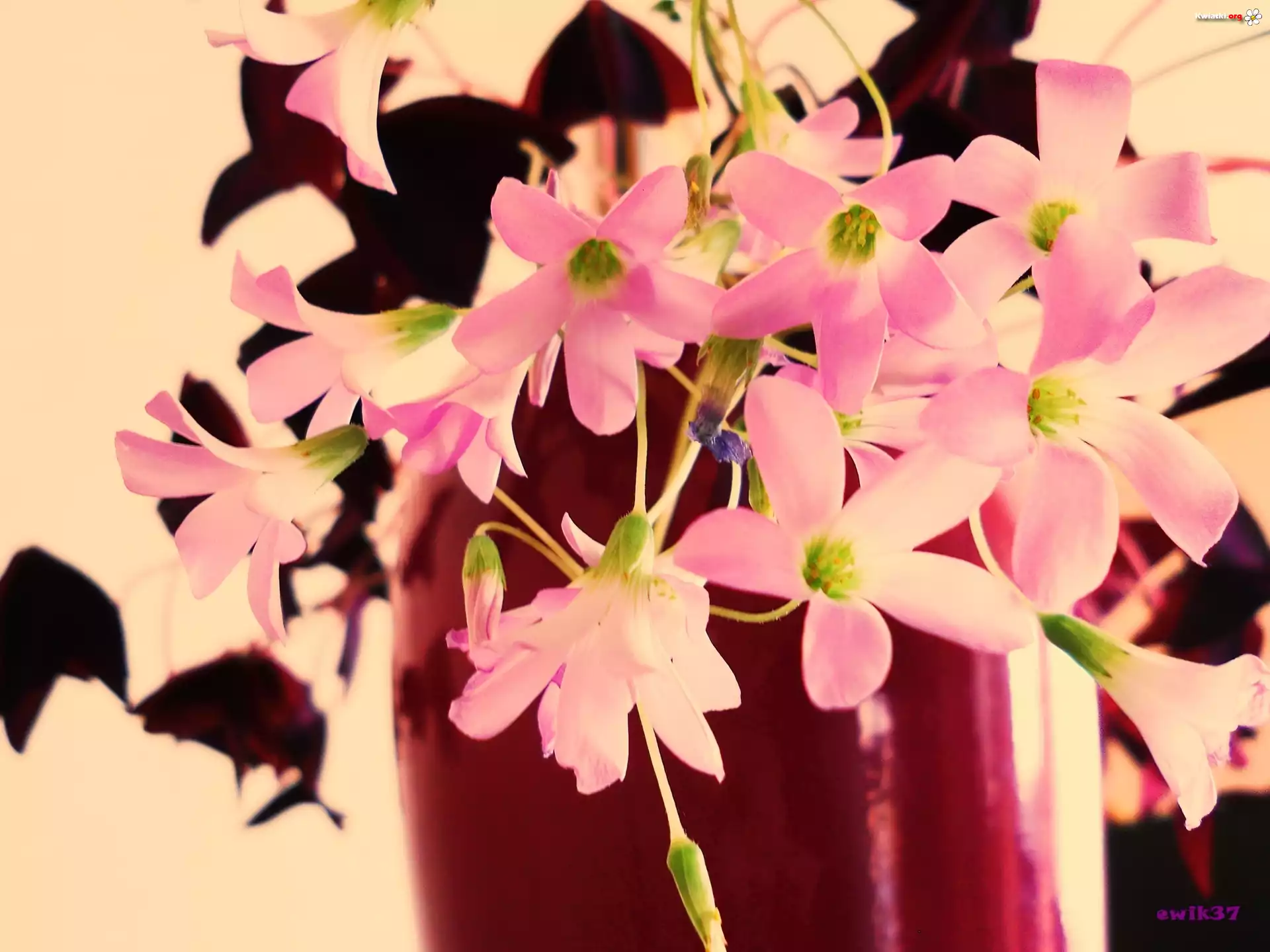 Różowe, Kwiaty, Doniczka - Zdjęcia