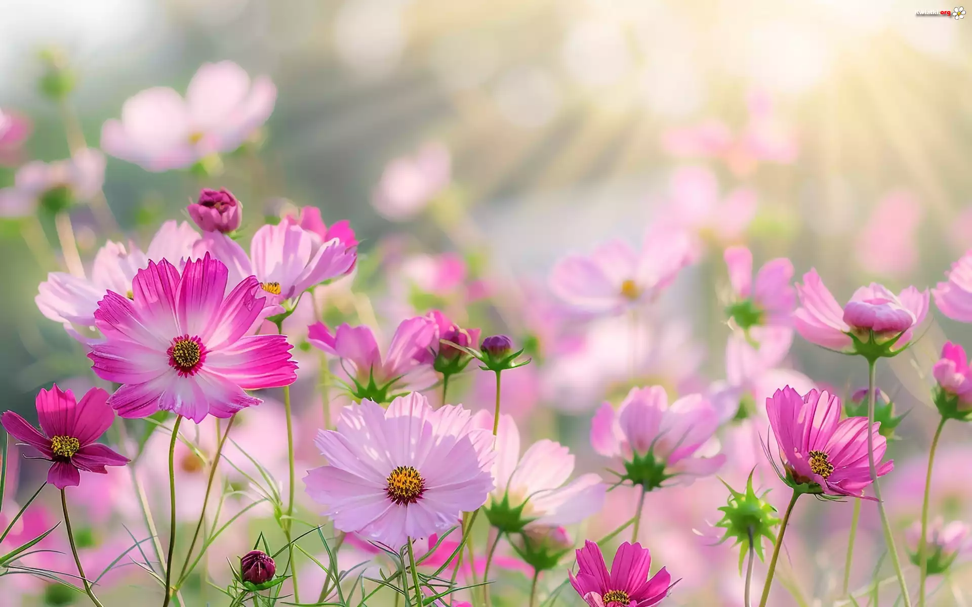 Kosmea, Kwiaty, Różowe, Łąka, Grafika - Zdjęcia