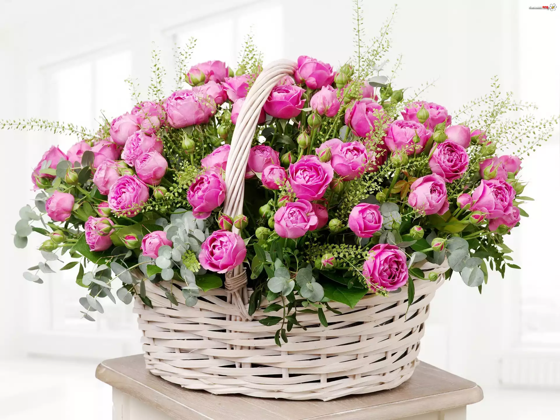 Kwiaty, Kosz, Różowe, Róże - Zdjęcia