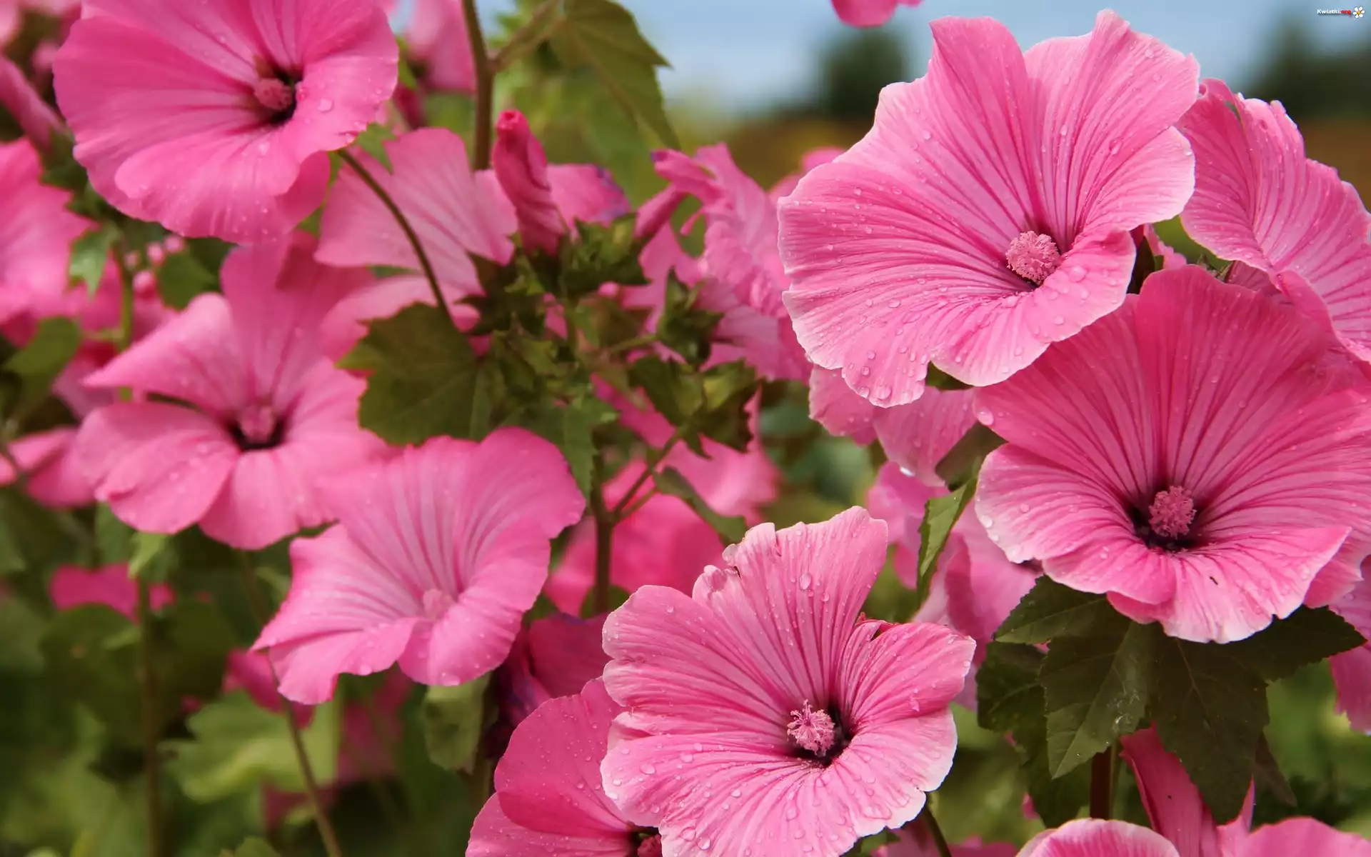 Różowe, Kwiaty, Ślazówka letnia - Zdjęcia
