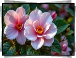 Kwiat Dwa, Kwiaty, Różowe, Kamelie, Liście